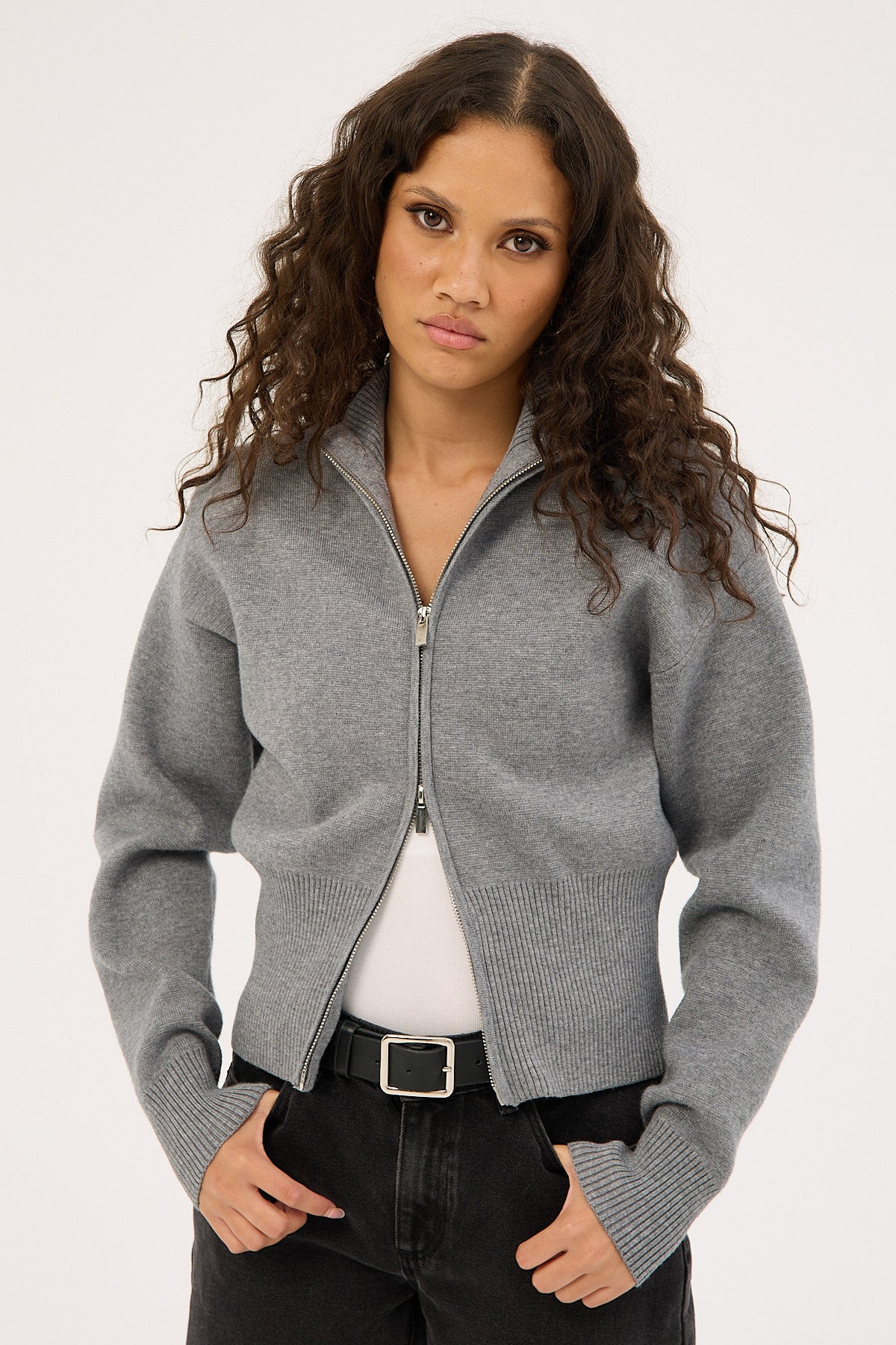 Rana Zip Up Cardigan Charcoal