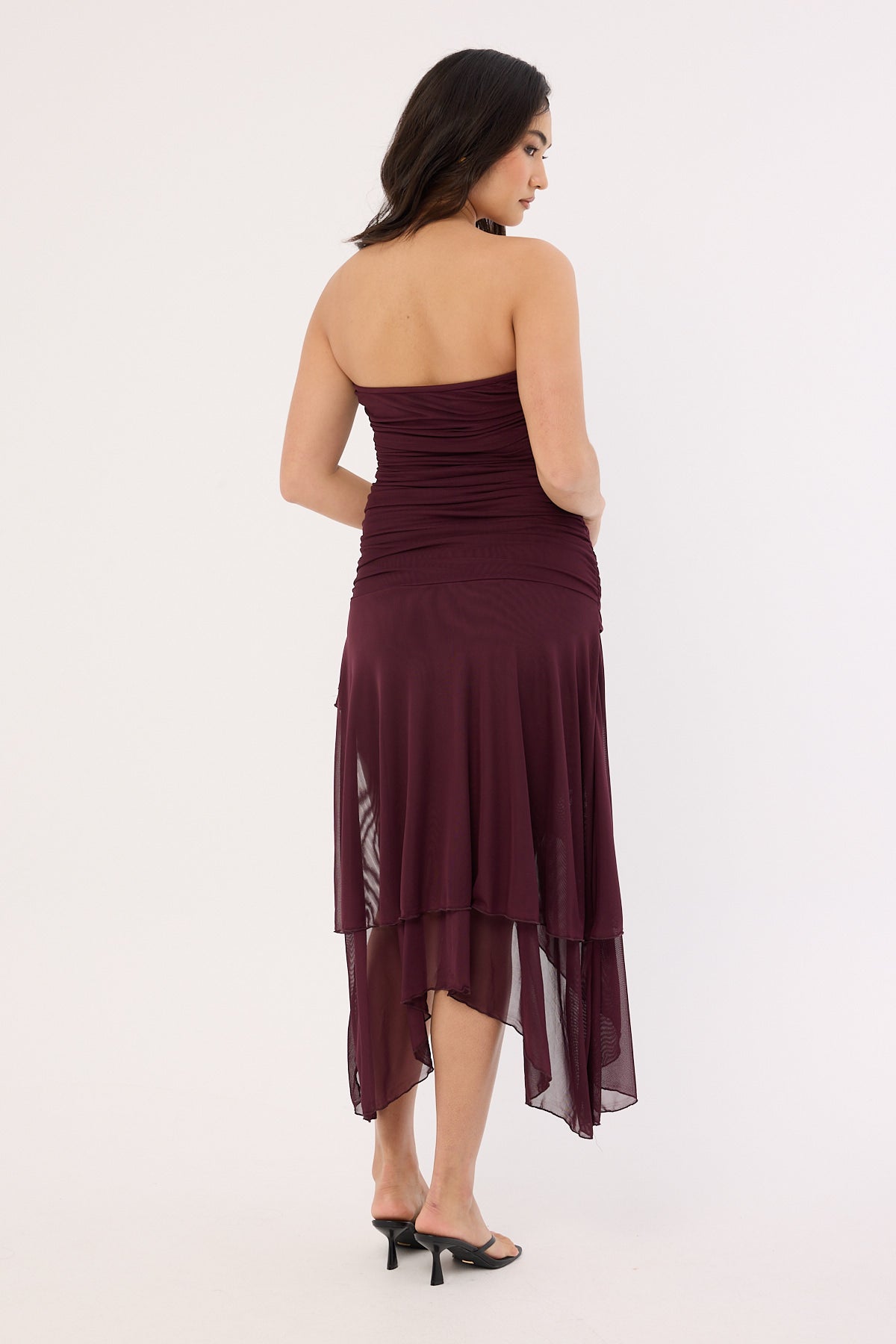 Malia Strapless Asymmetrical Midi Dress Plum
