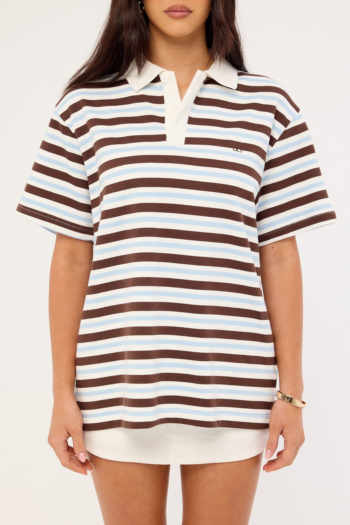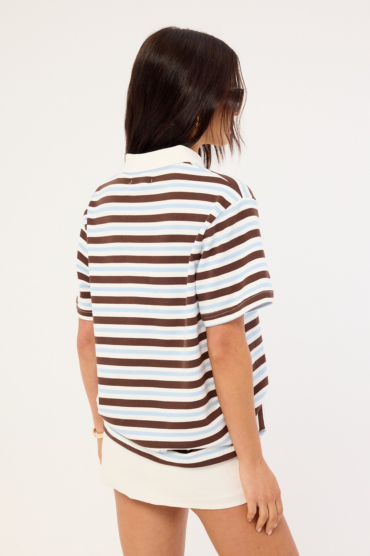Hailey Short Sleeve Rugby Top Brown Stripe