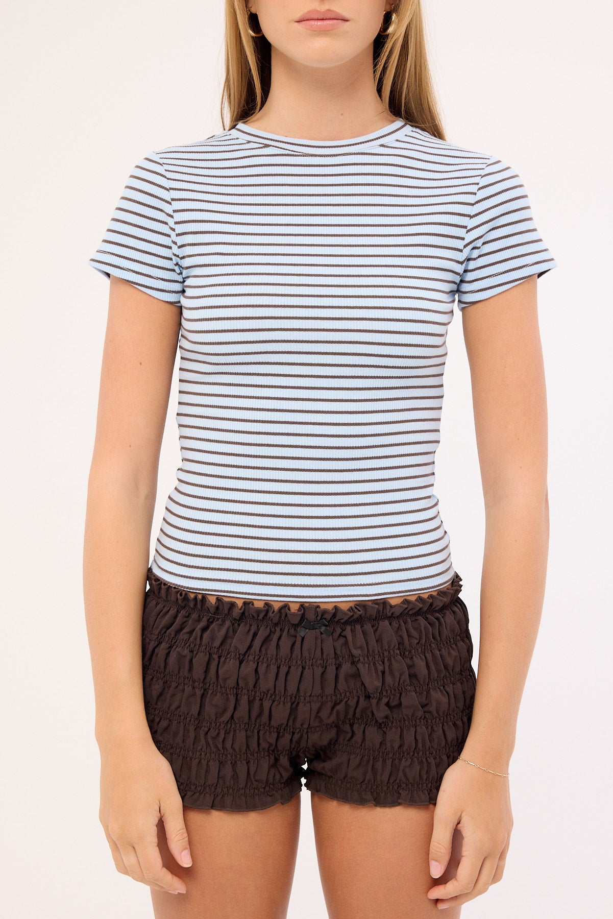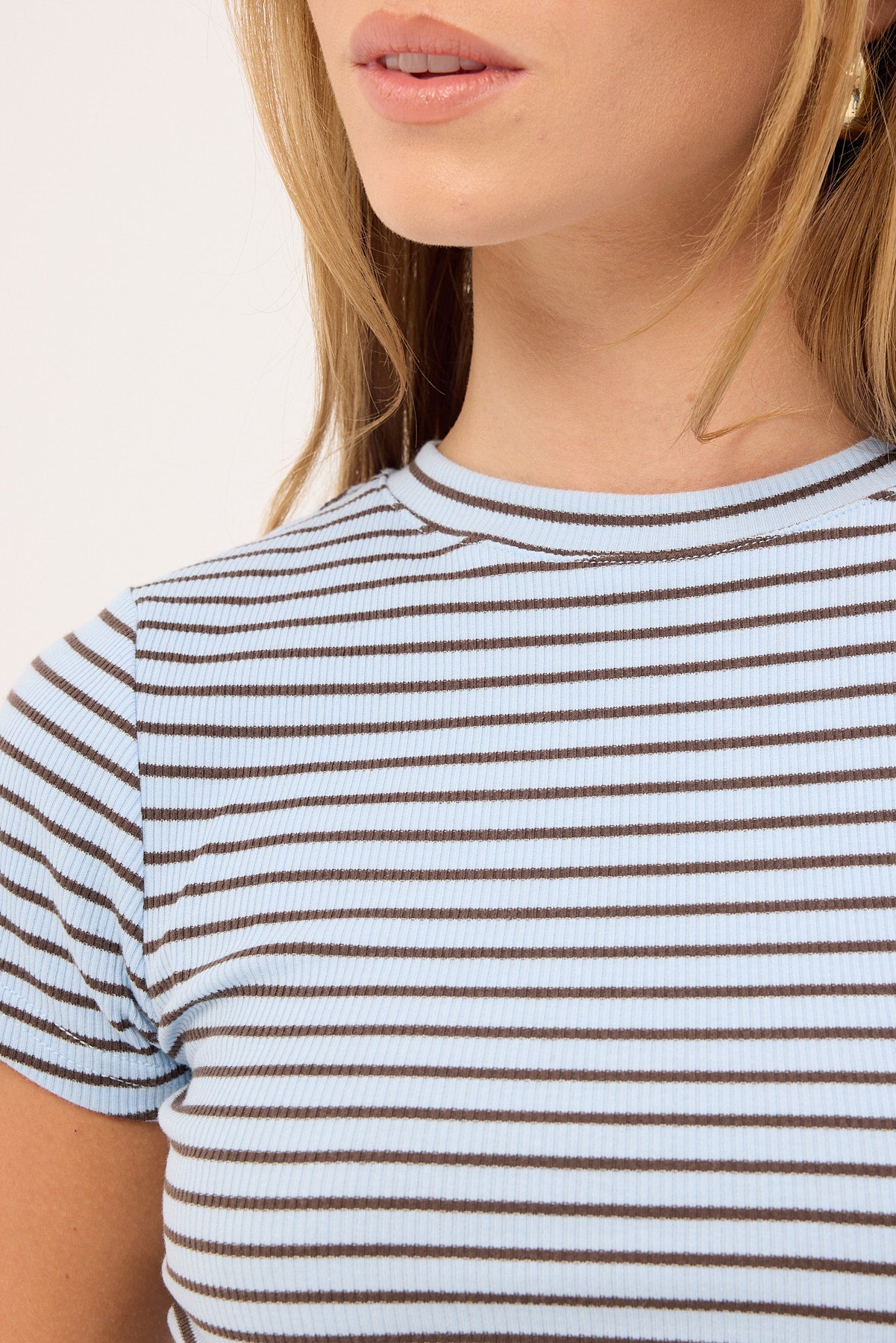 Ashley Stripe Longline Baby Tee Blue and Burgundy