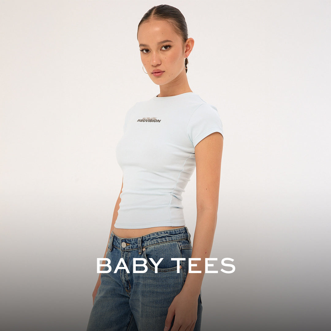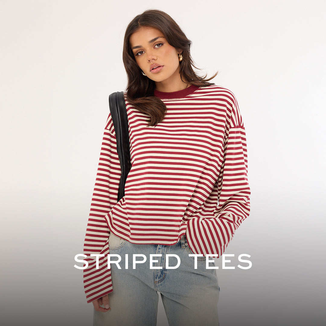 Discover our collection of trending corset tops, crop tops, oversized tees, baby tees, longline tees and long sleeve tops.