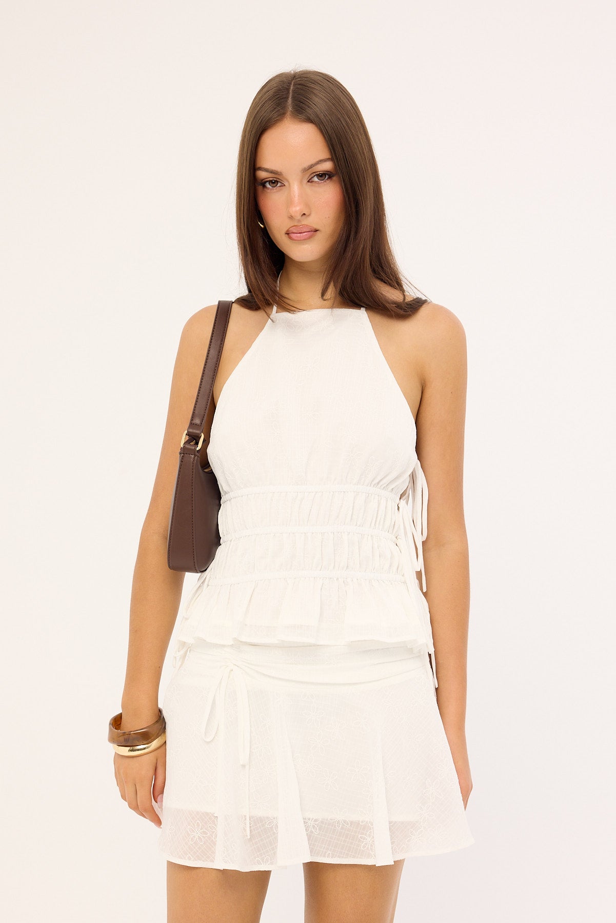 Serra Ruched Tie Mini Skirt Off White