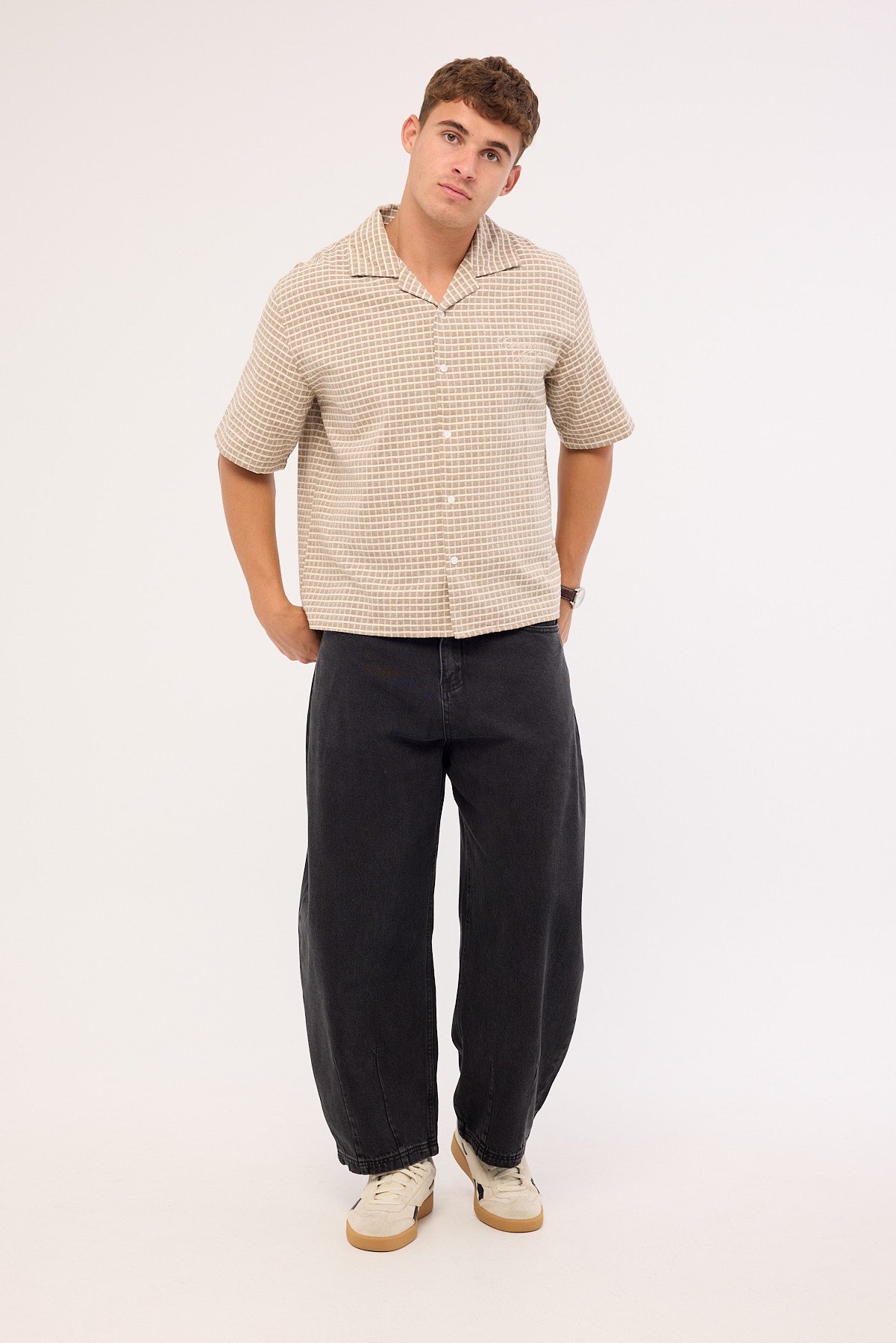 • The model is wearing size 32. He is 187 cm tall with a 97 cm chest and 81 cm waist