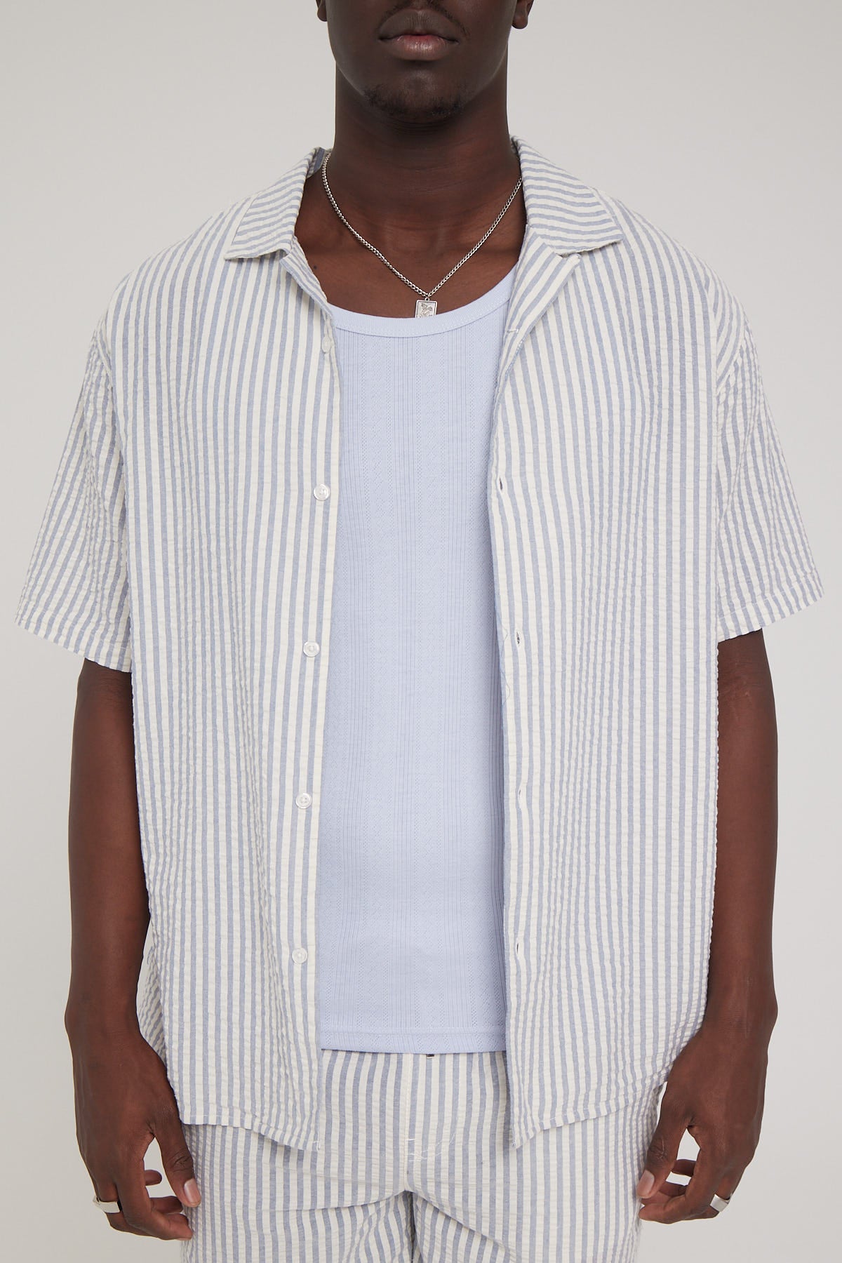 Cuba Seersucker Resort Shirt Blue