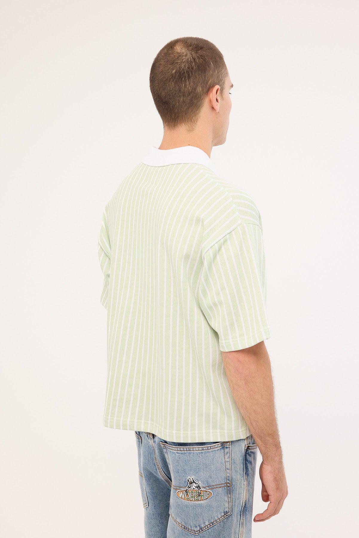 Eton Boxy Cropped Polo Sage Stripe