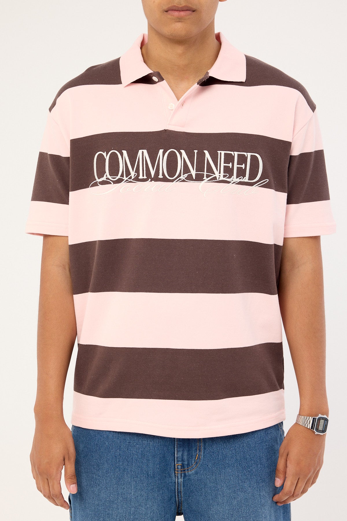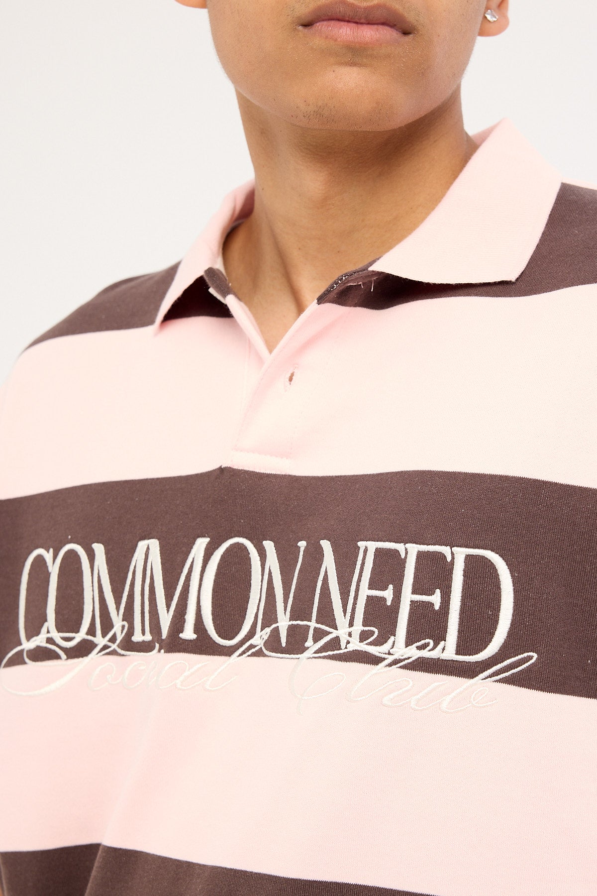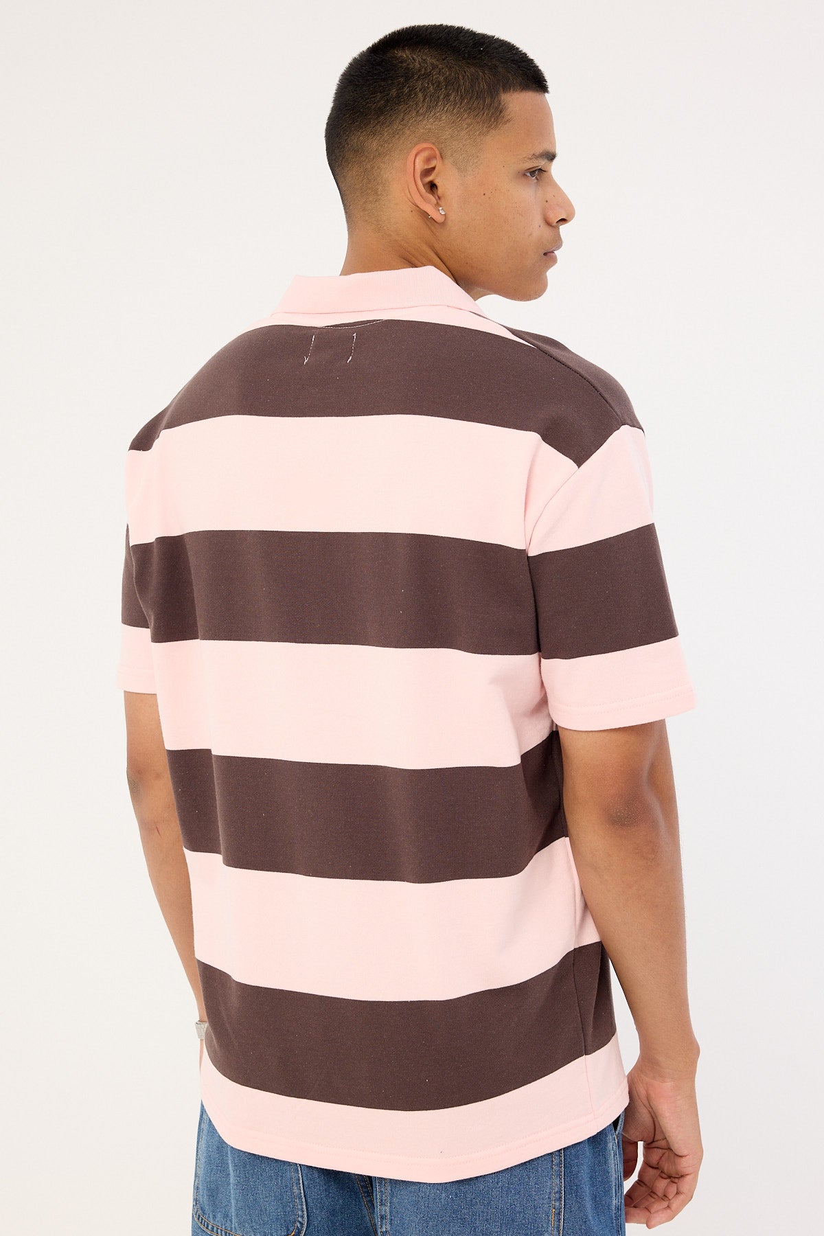 Jake Short Sleeve Rugby Polo Brown/Pink Stripe