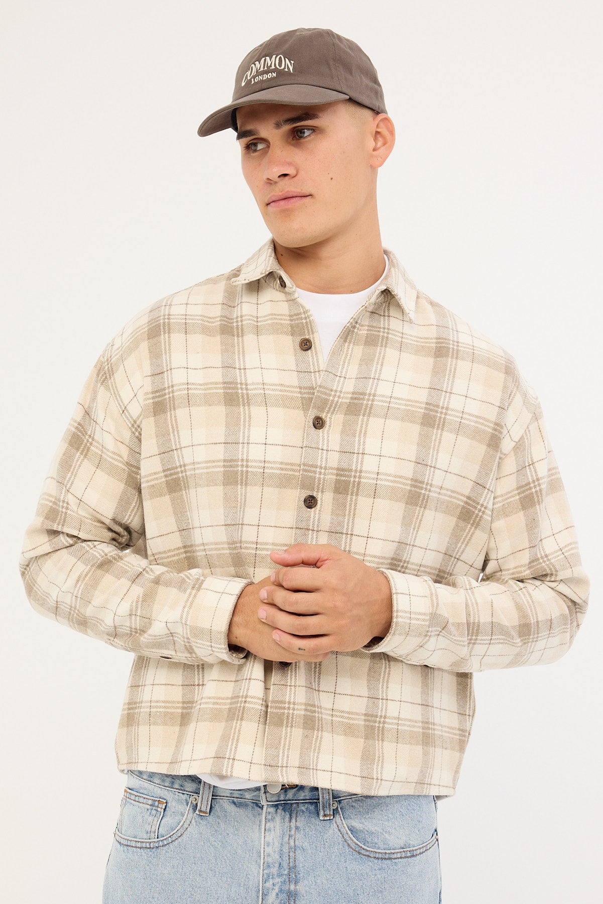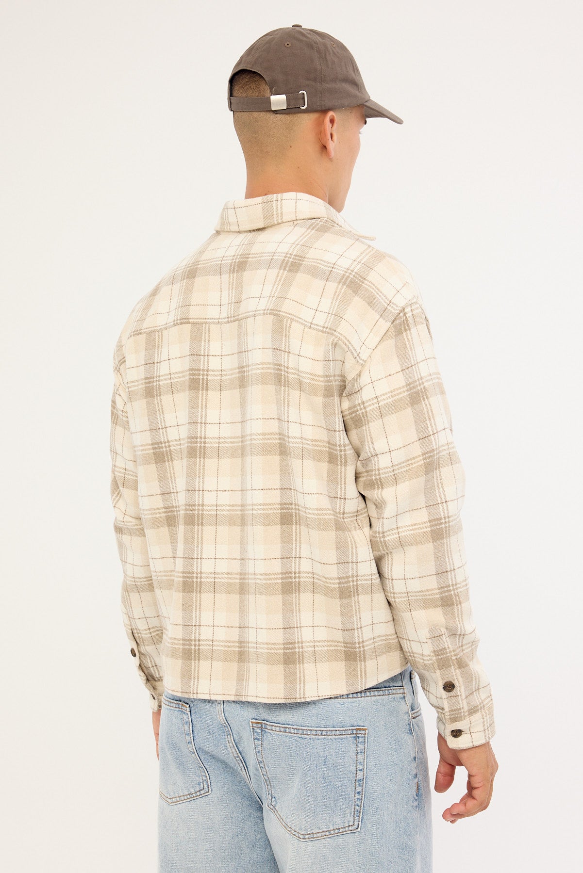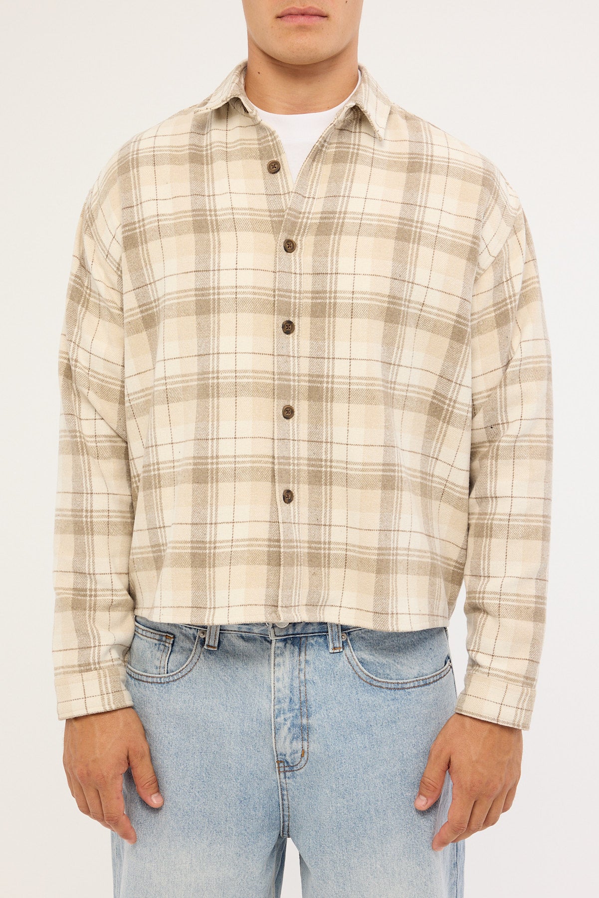 Preston Cropped Flannel Overshirt Off White