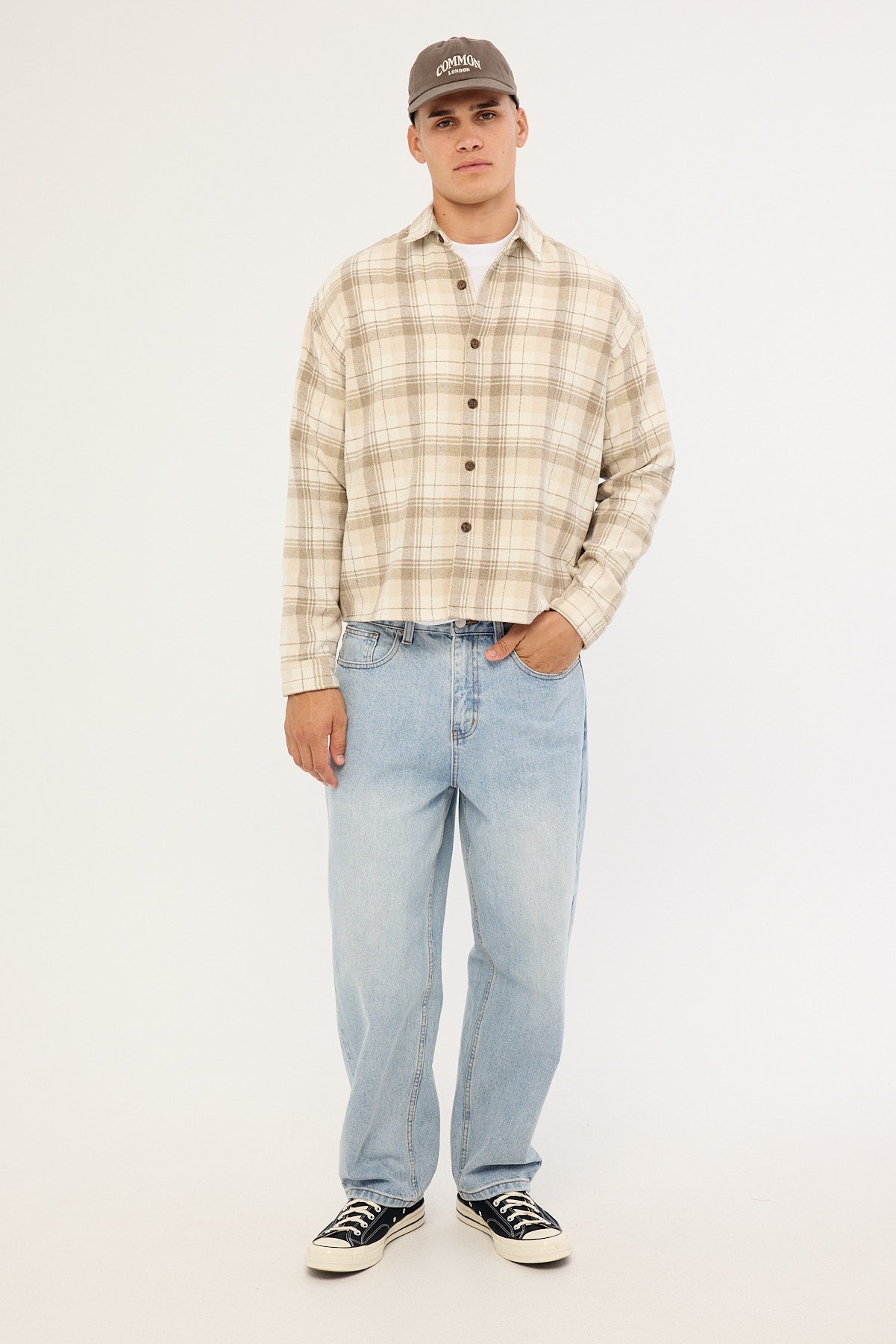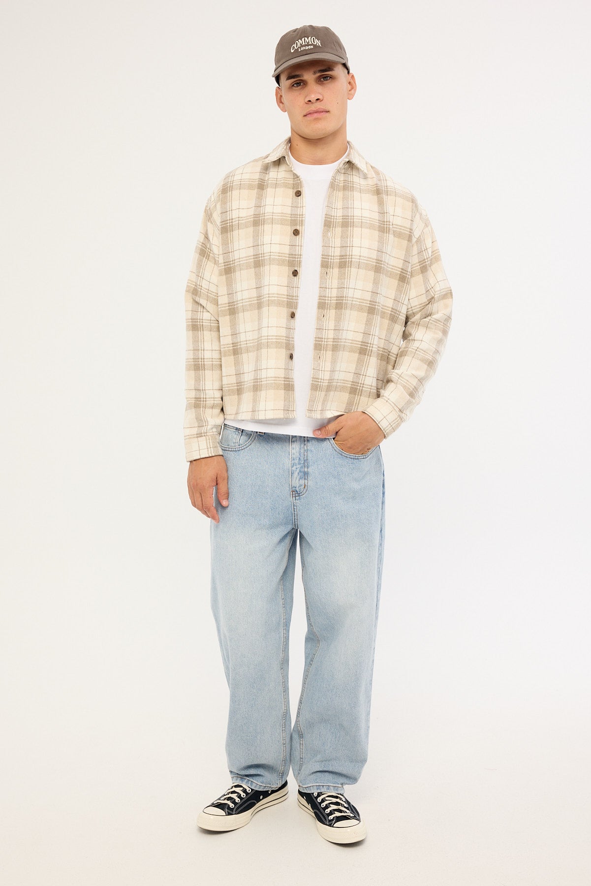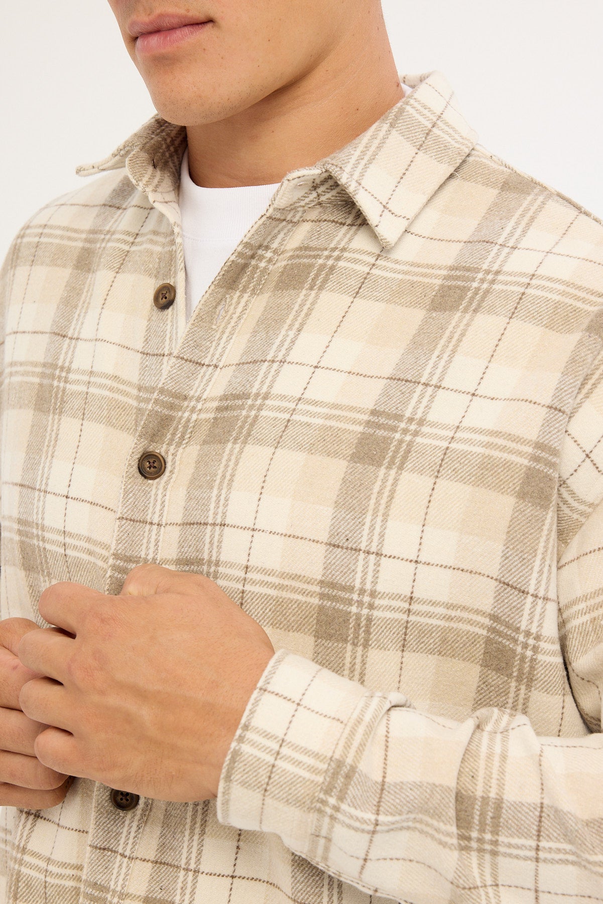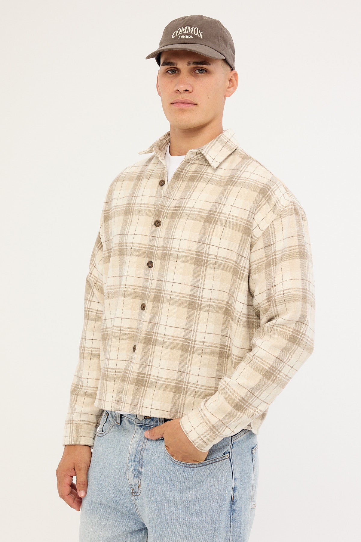 Preston Cropped Flannel Overshirt Off White