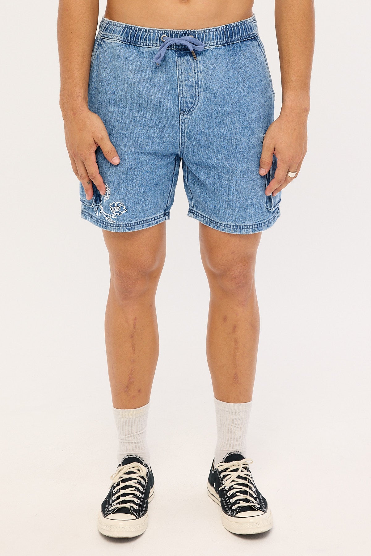 Sprig Relaxed Cargo Short Ocean Blue Denim