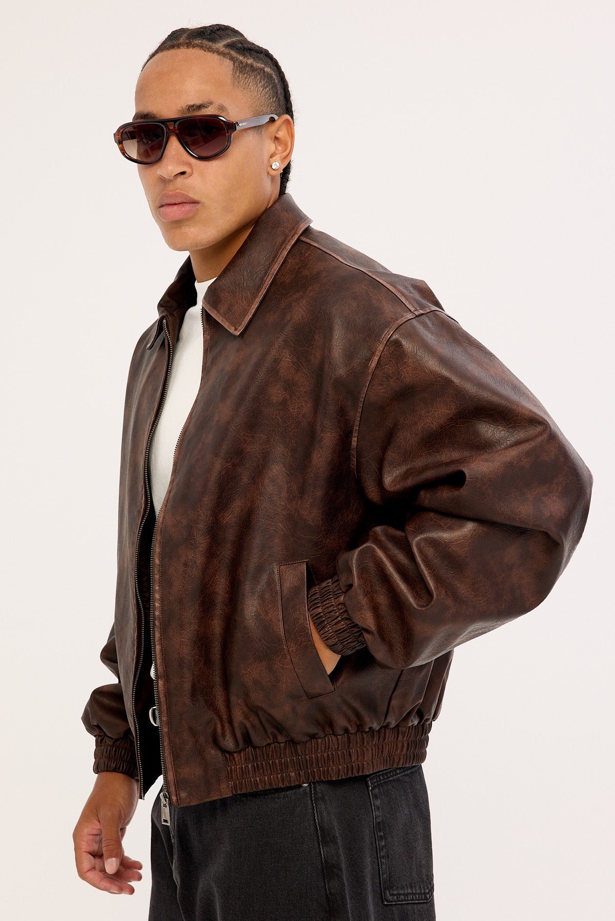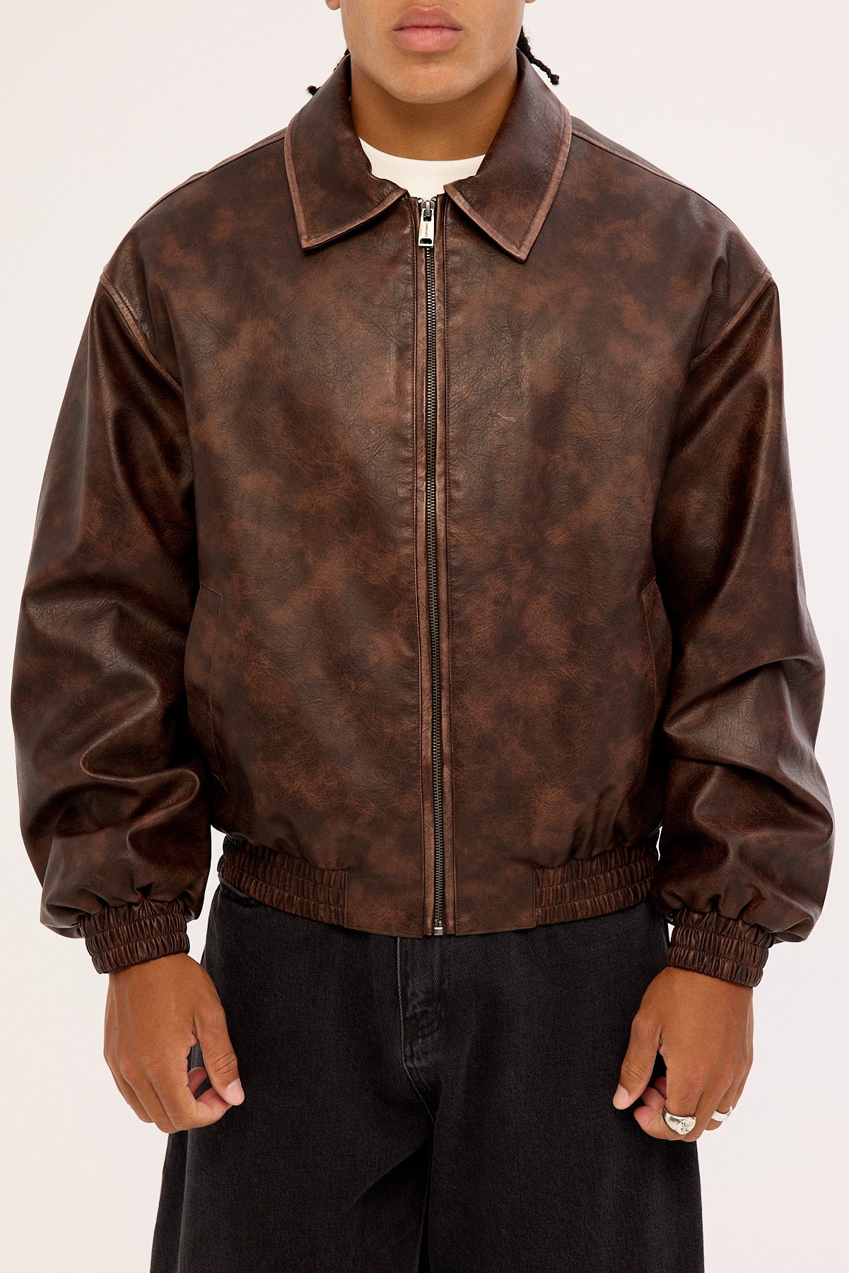 Wingman Recycled PU Leather Jacket Washed Brown