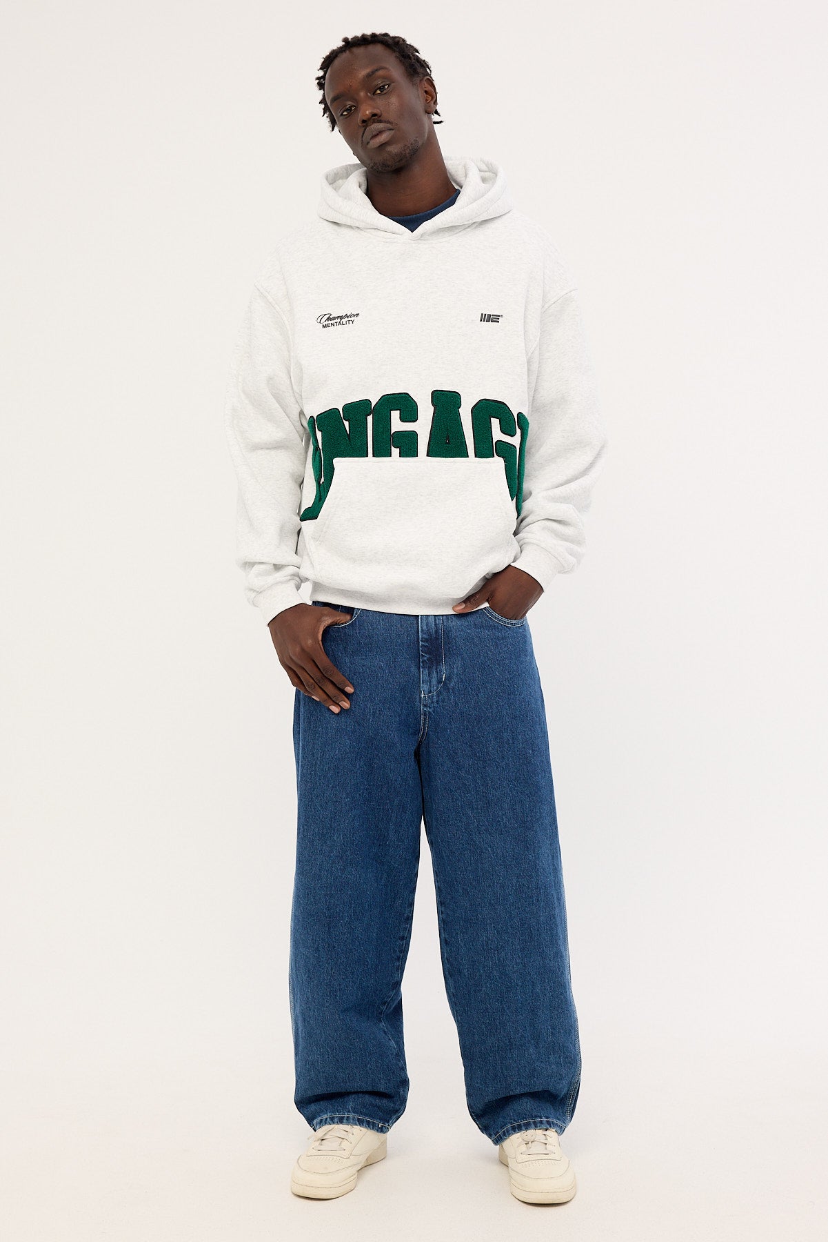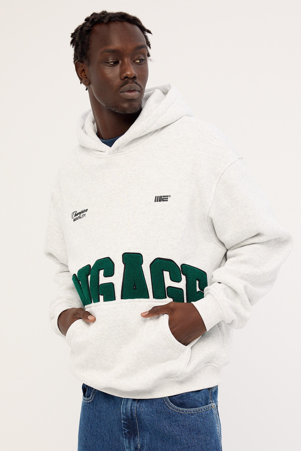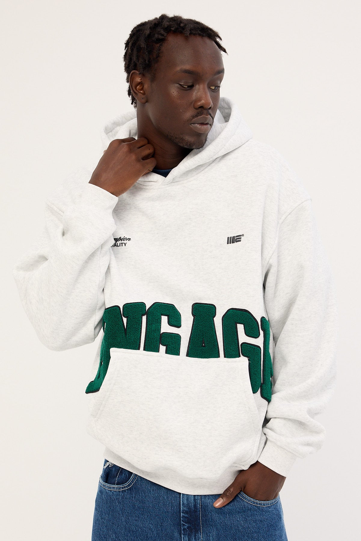 Chenille Patch Hoodie Grey