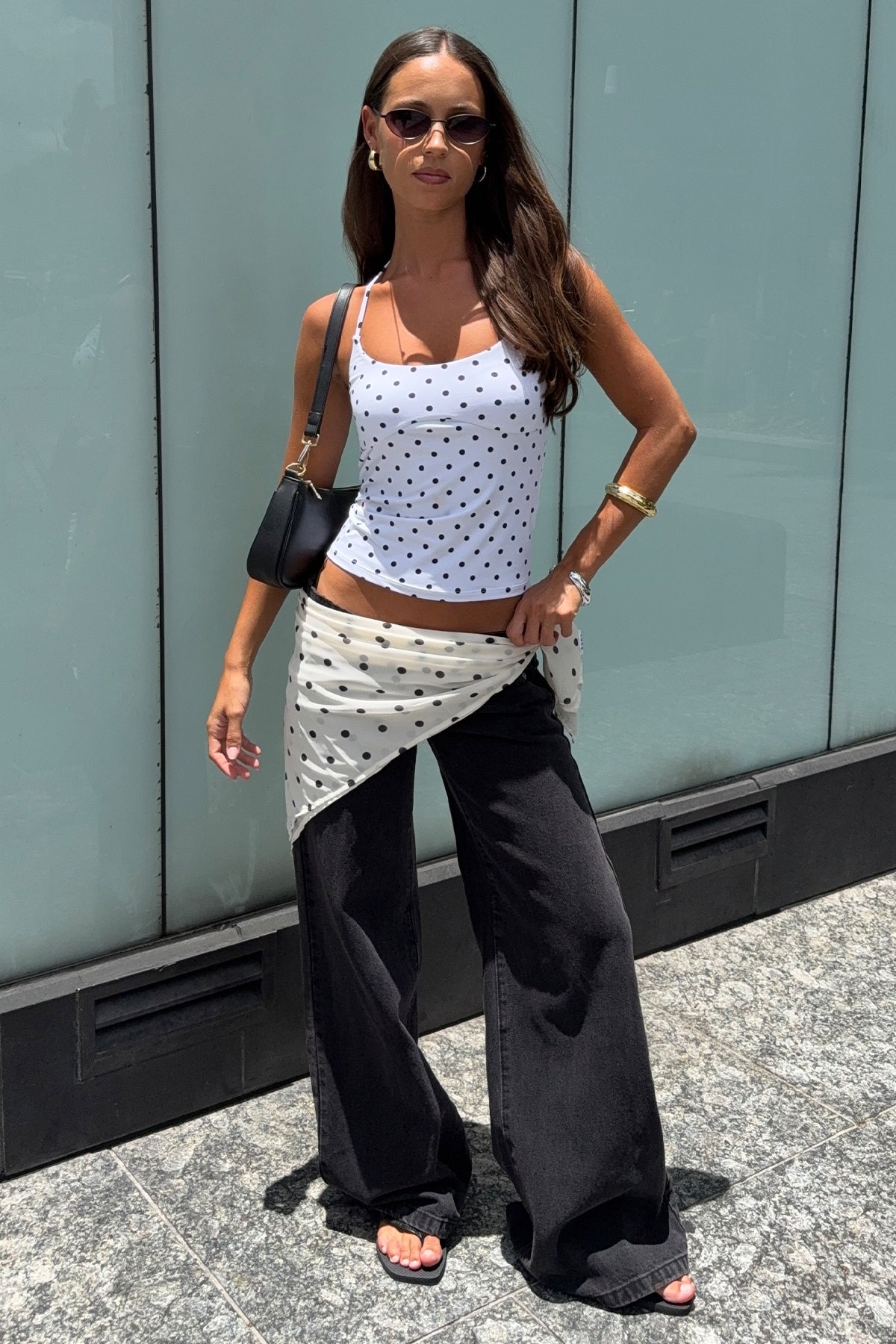 Halter Tie Tank Top White Polka