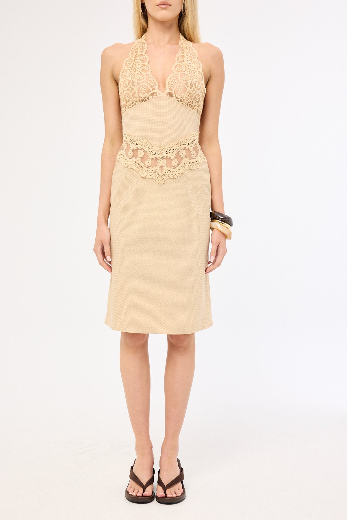 Solana Midi Dress Beige Plaid