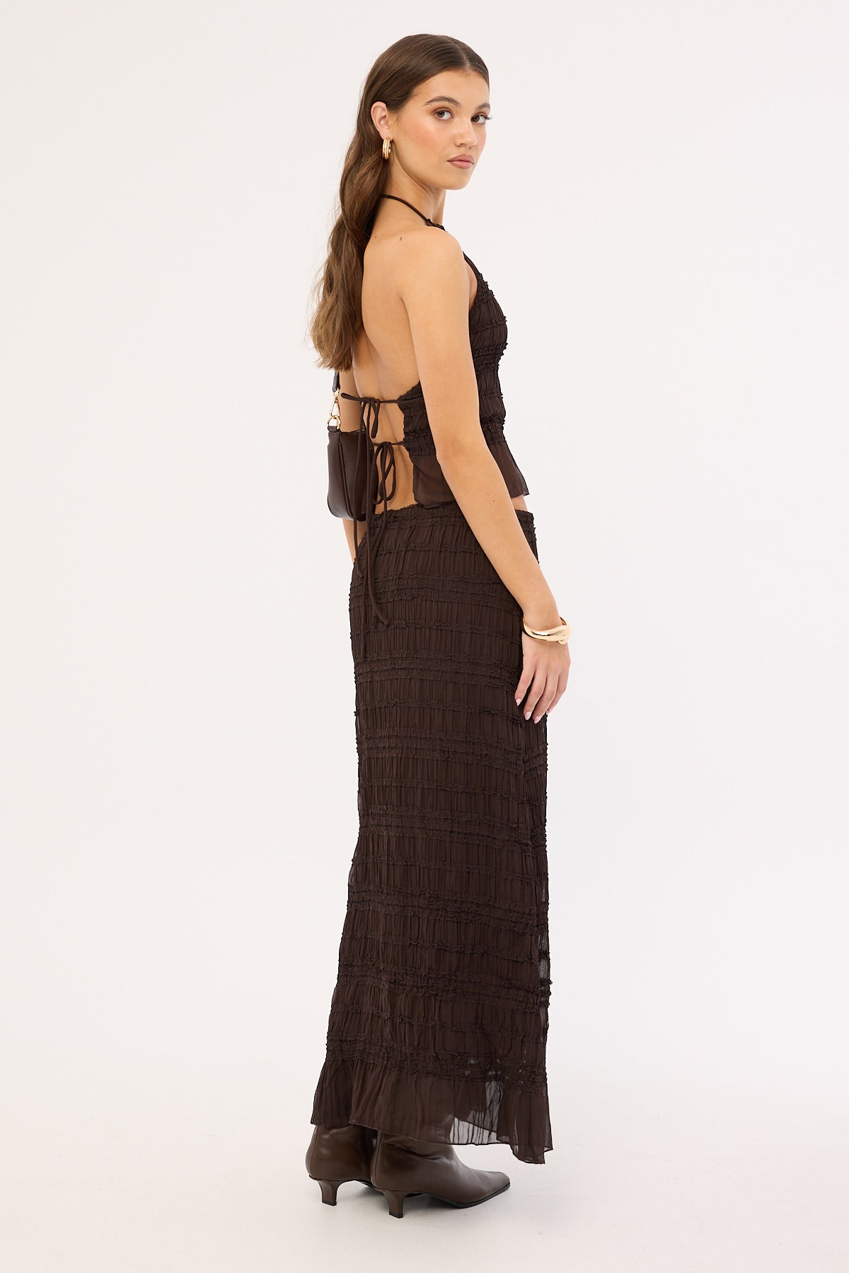 Marisole Gathered Maxi Skirt Choc