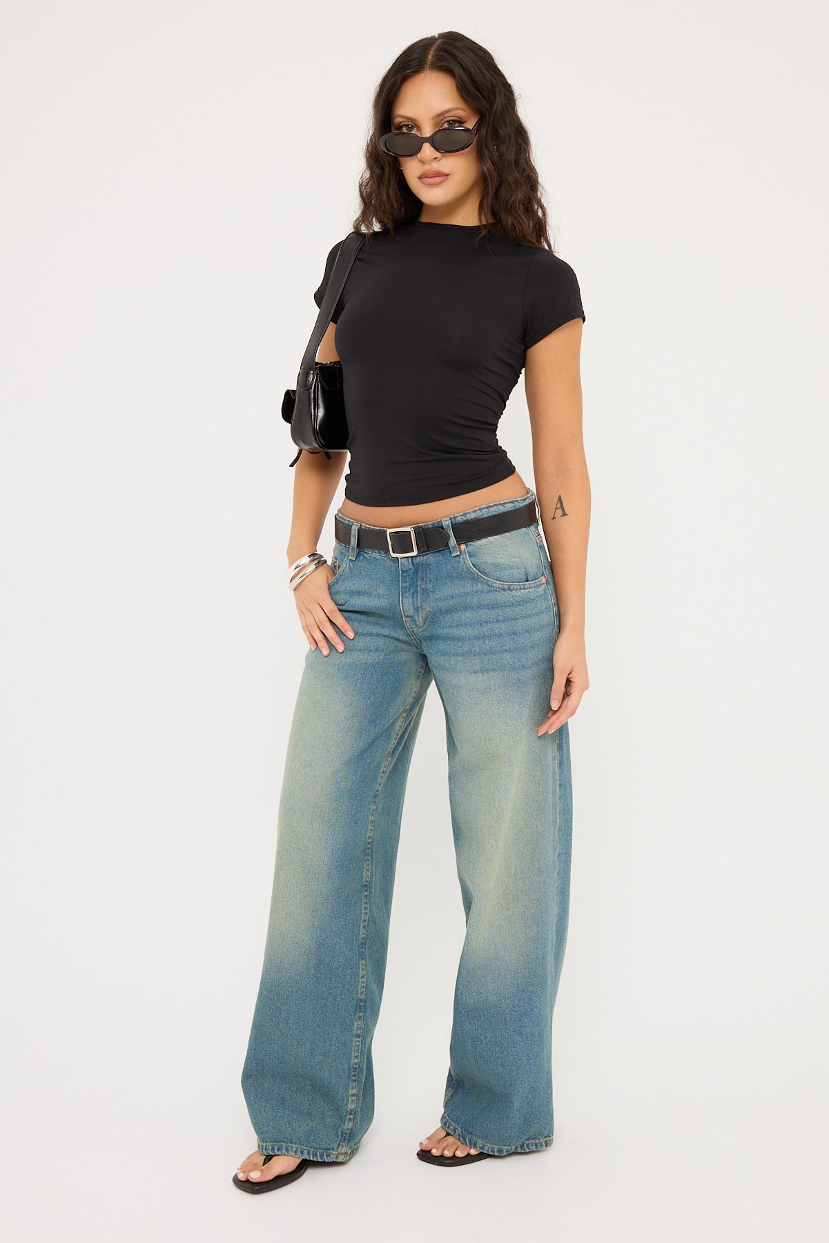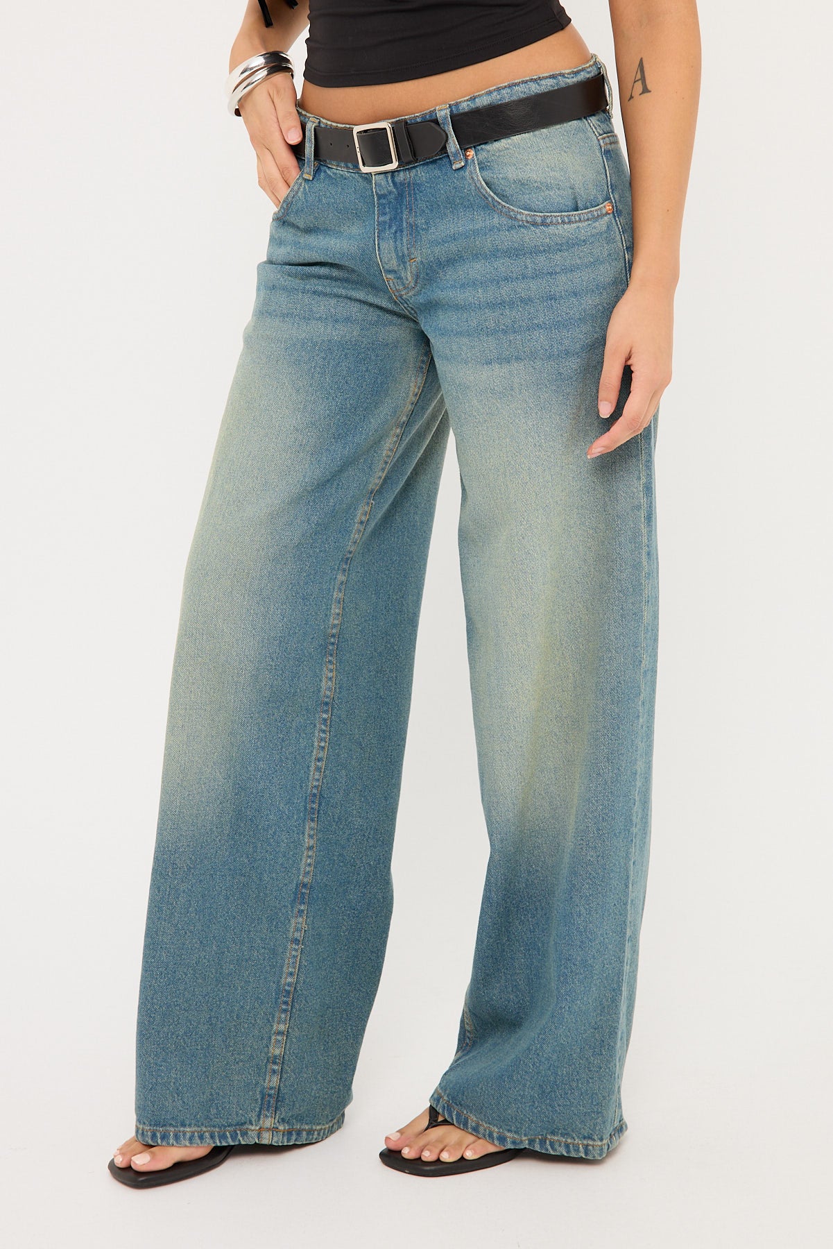 Roomy Extra Wide Low Rise Jean Vintage Blue Green