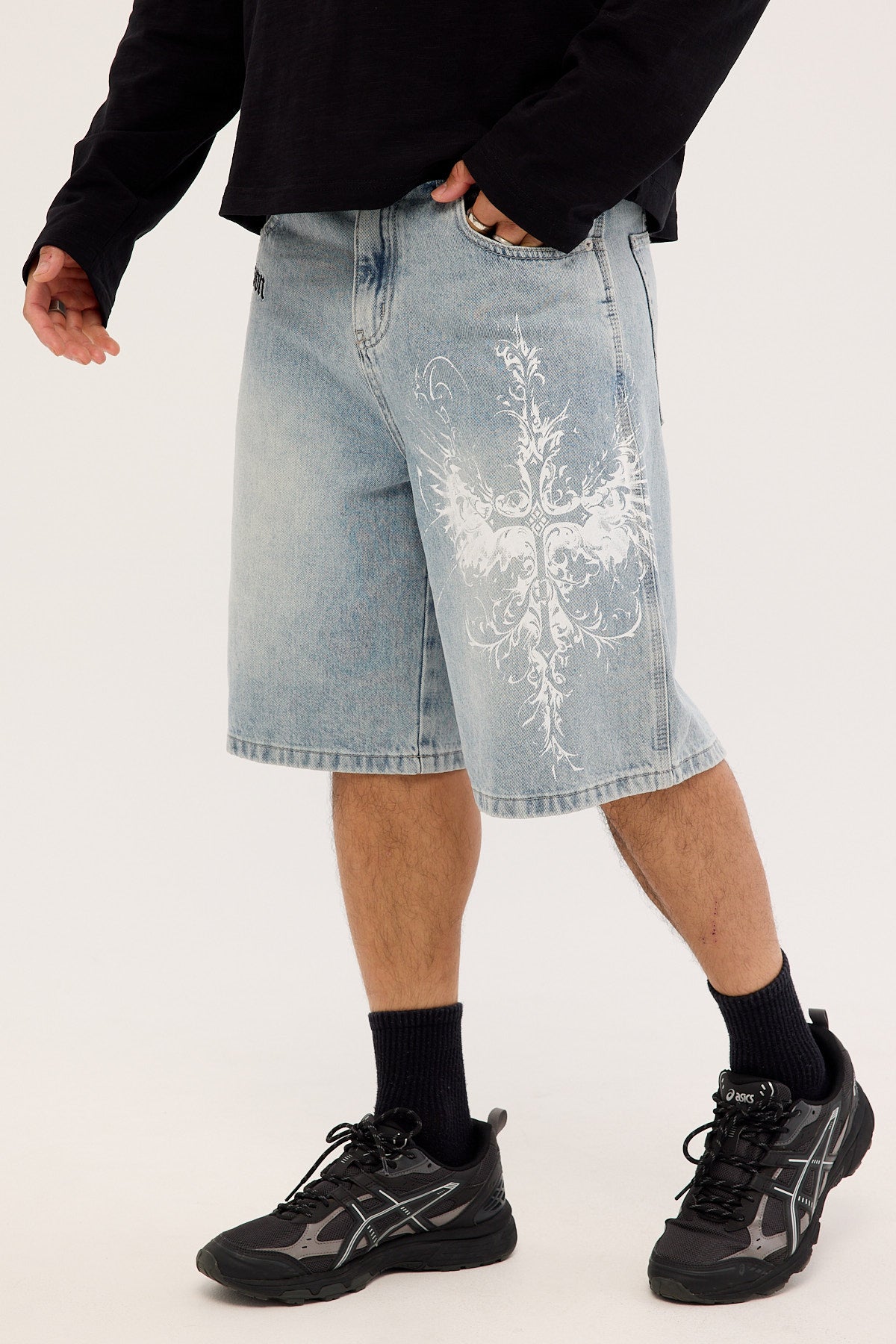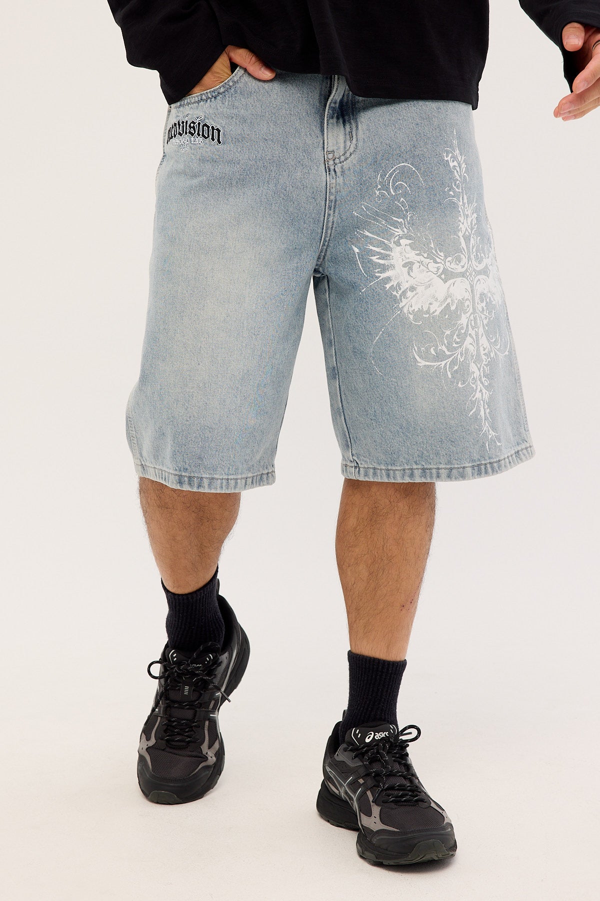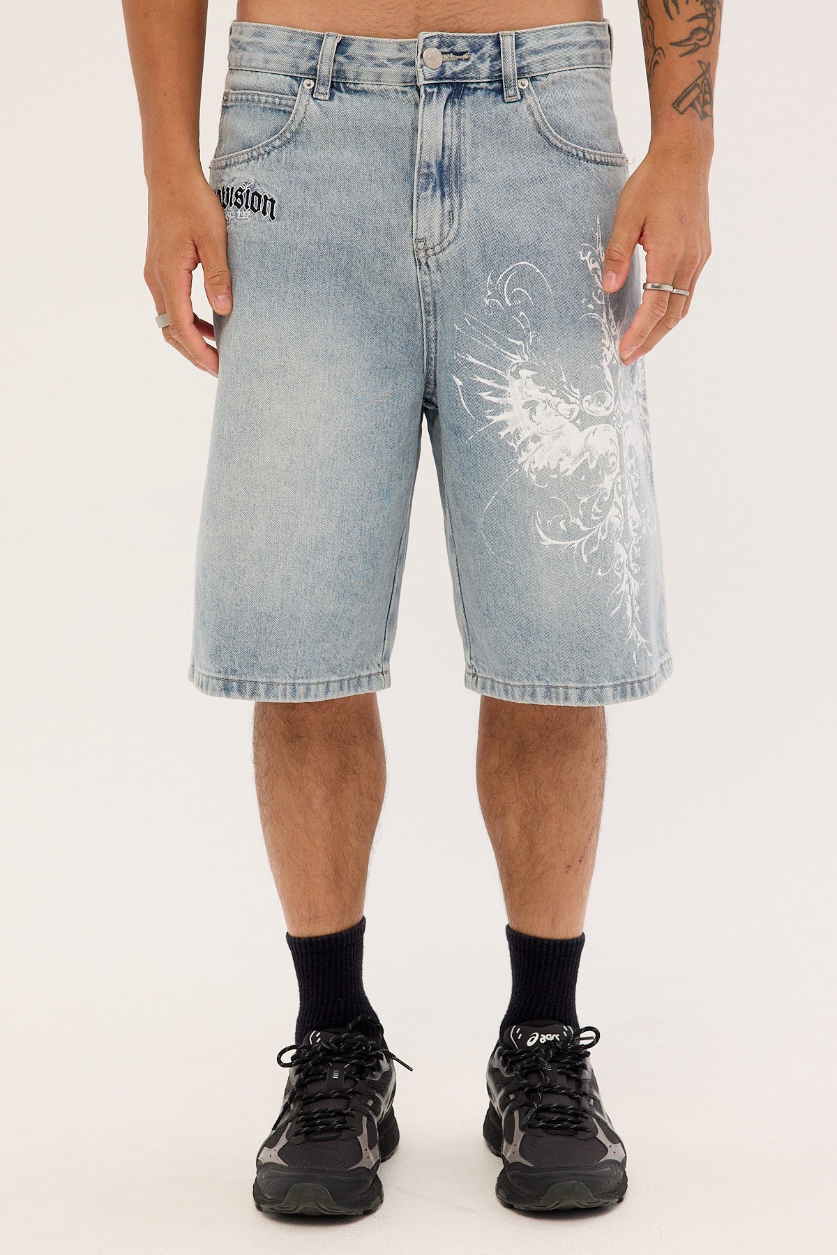 Fallen Cross Nexa Baggy Jort Blasted Washed Blue