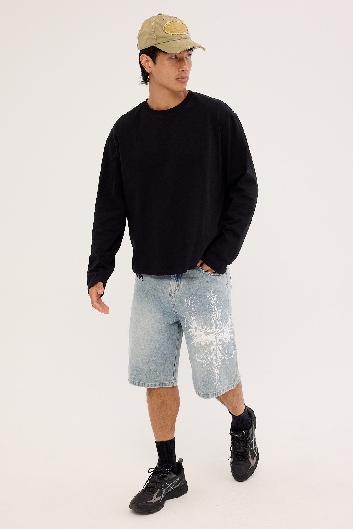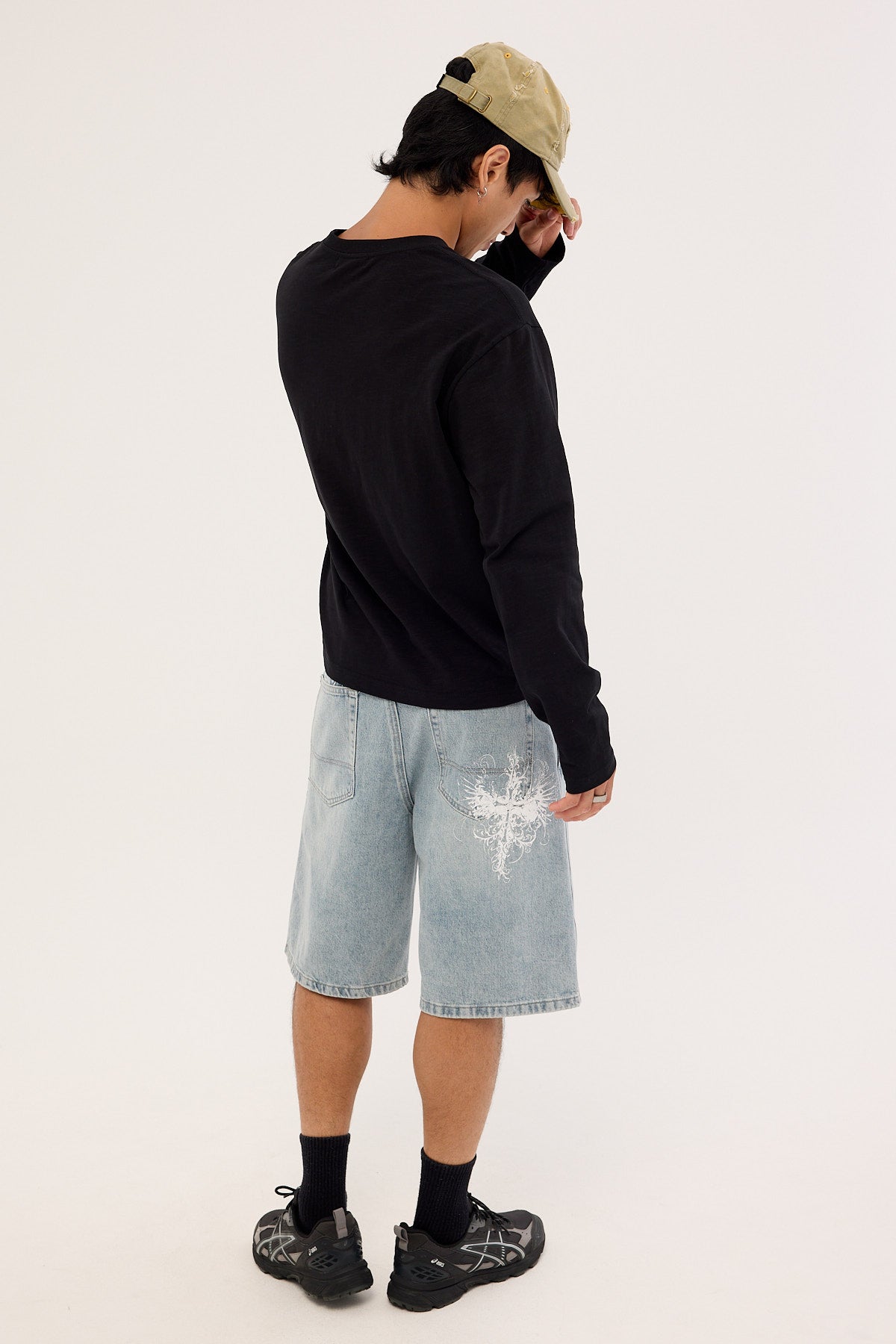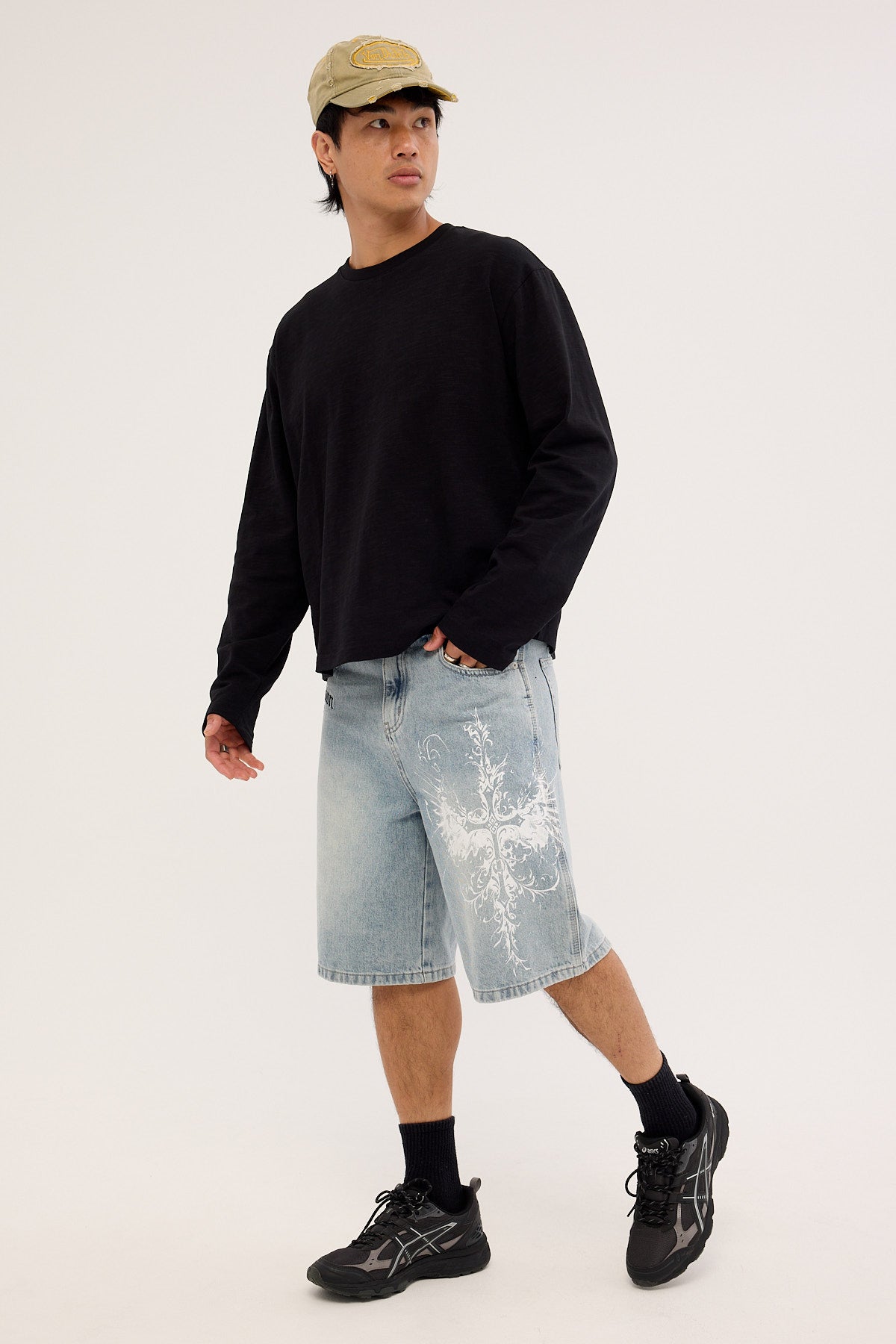 Fallen Cross Nexa Baggy Jort Blasted Washed Blue