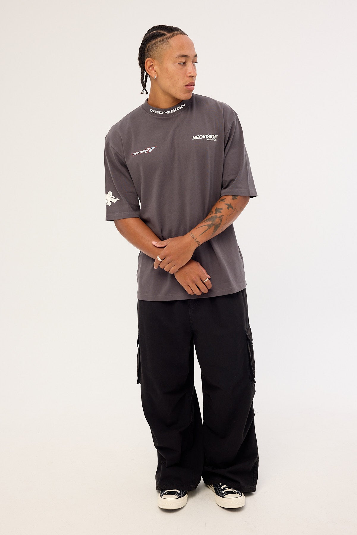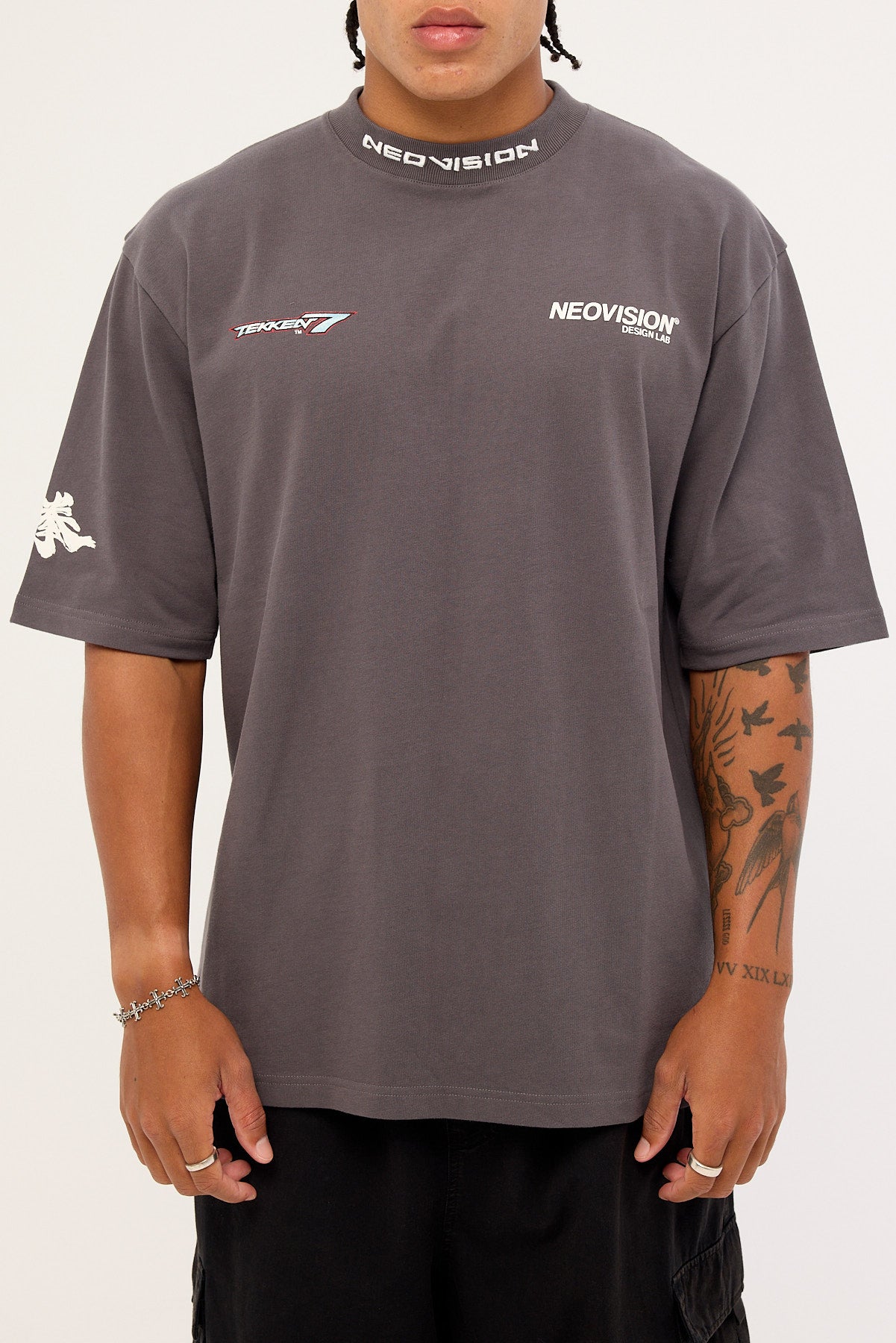 • Front Neovision logo and Japanese text on the sleeve are high density print. There is a Neovision embroidered logo on the centre of the neck rib. The Japanese text on the sleeve means “Tekken” and directly translates to “Iron Fist”. Tekken/Iron Fist signifies the legendary, brutally powerful fighting style of the series.
