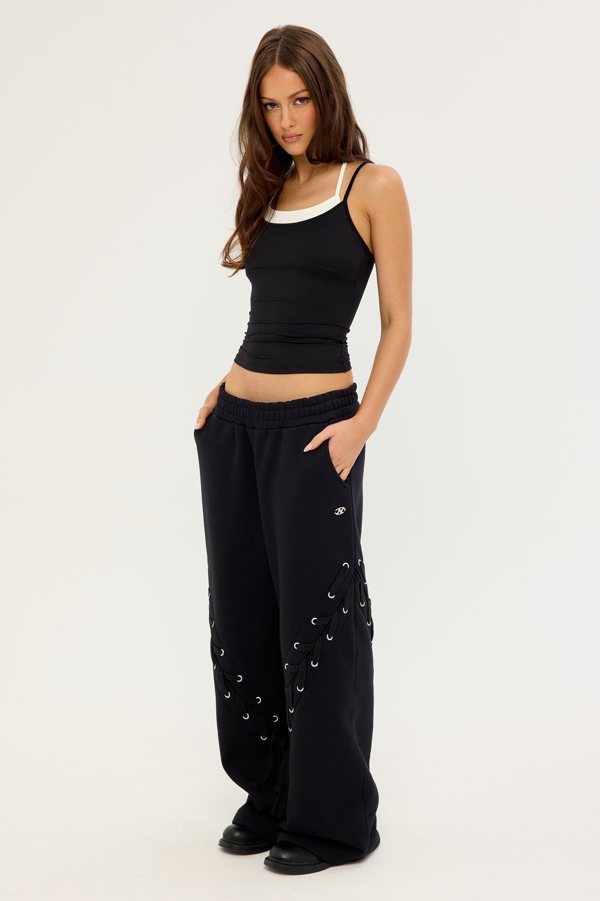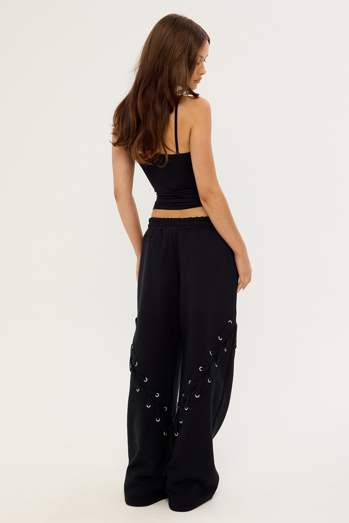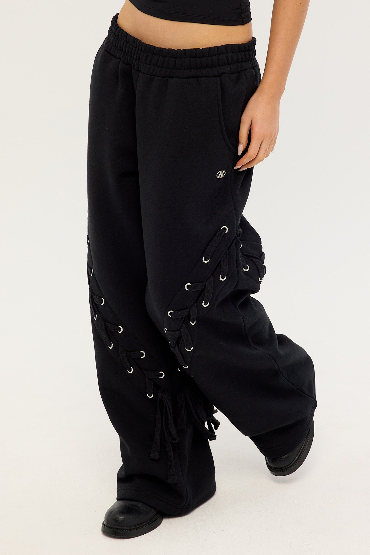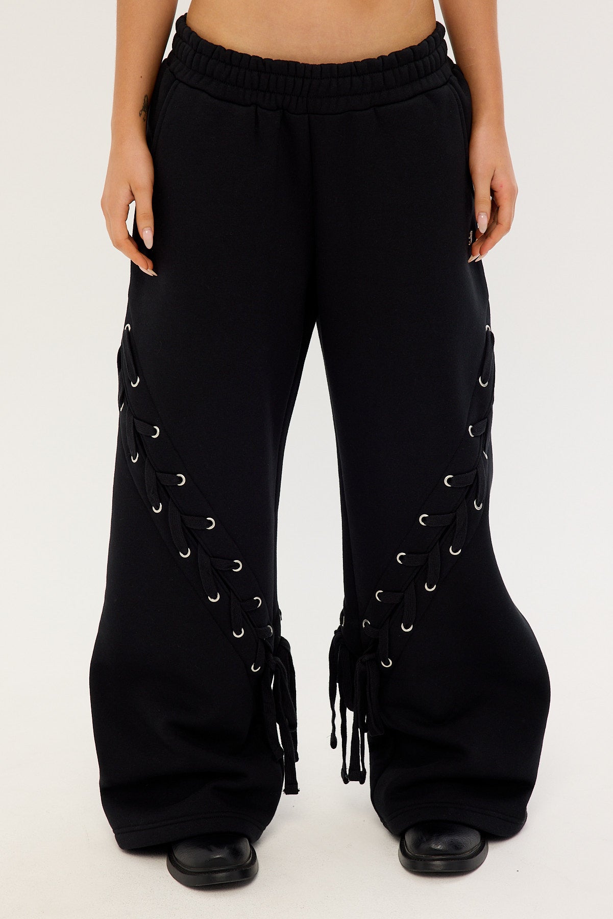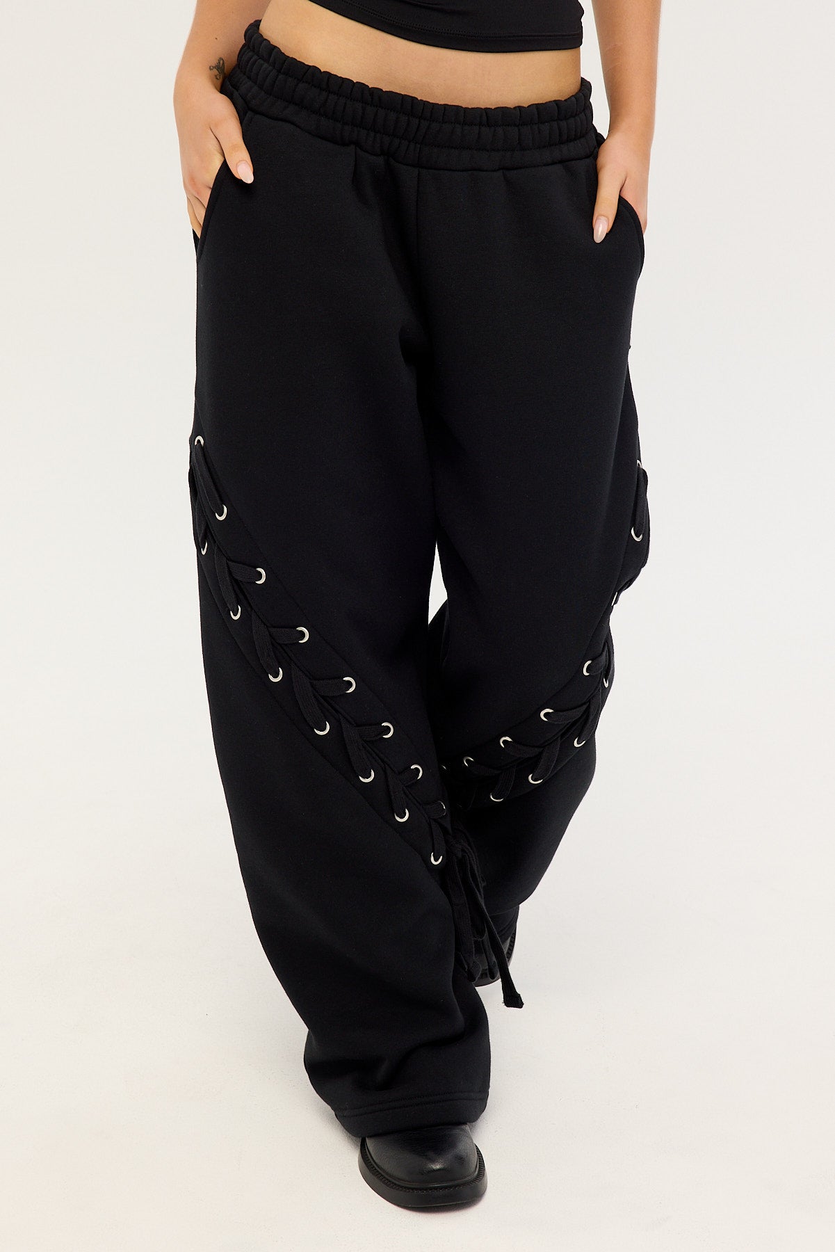 Lace Up Wide Leg Trackpant Black