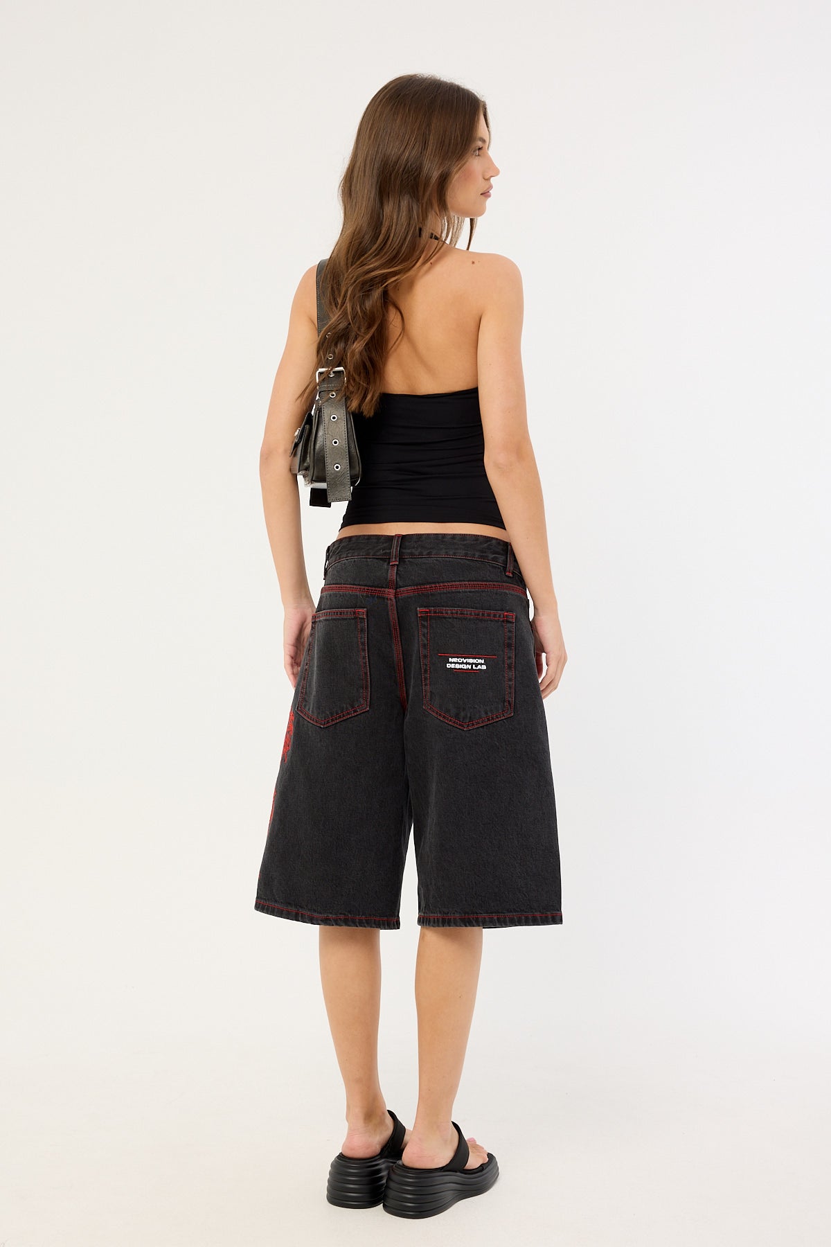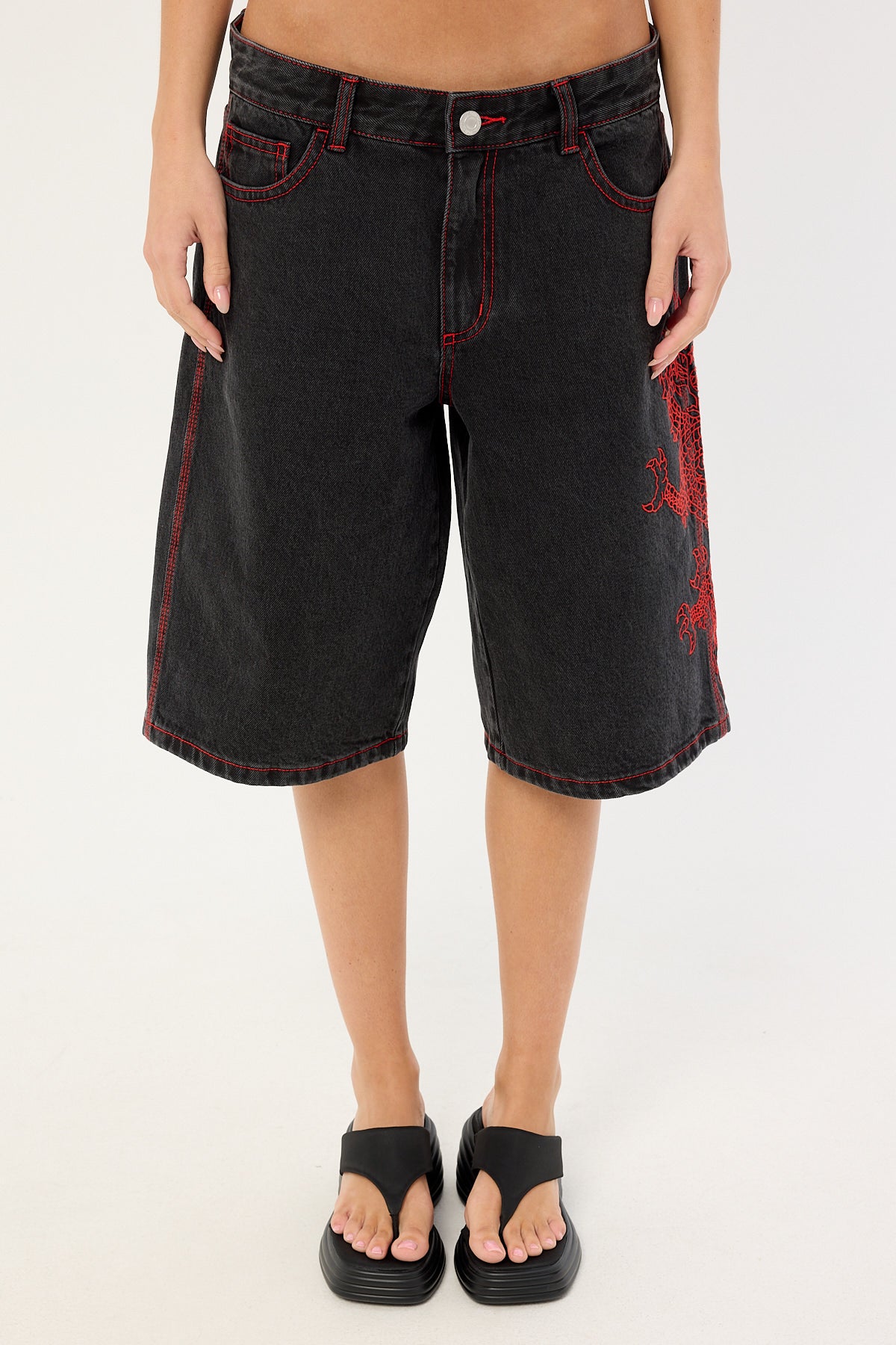 Rux Wide Leg Jort Washed Black