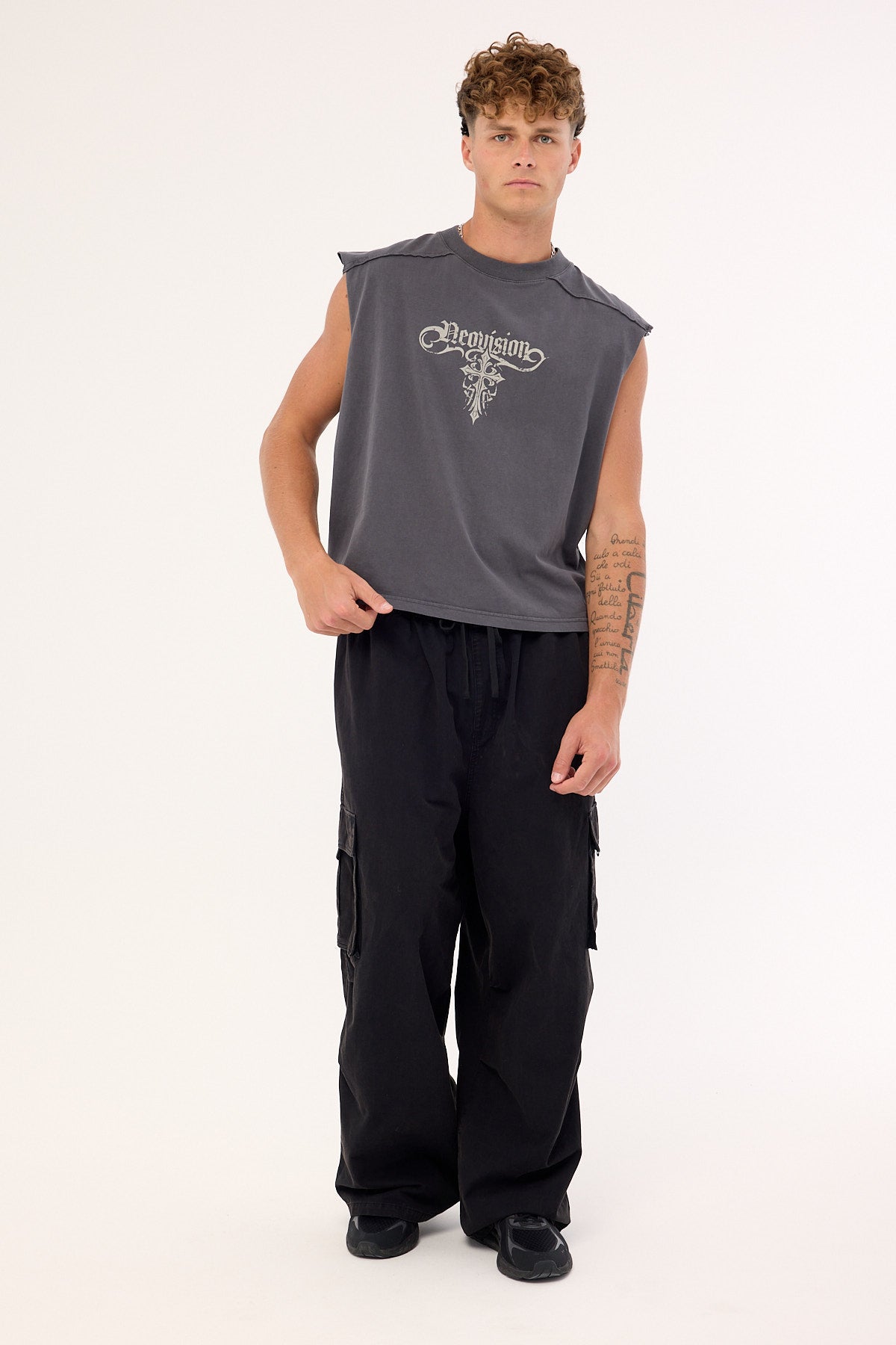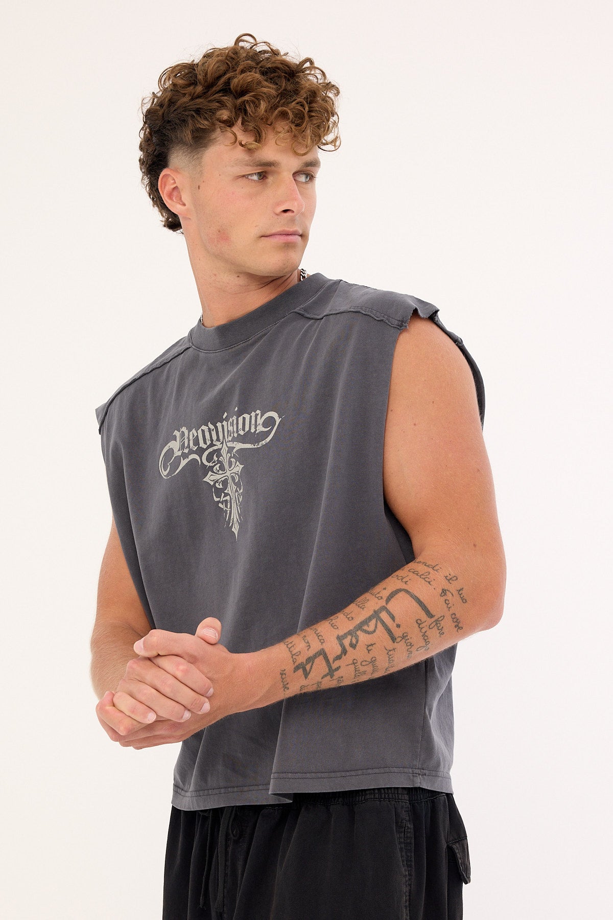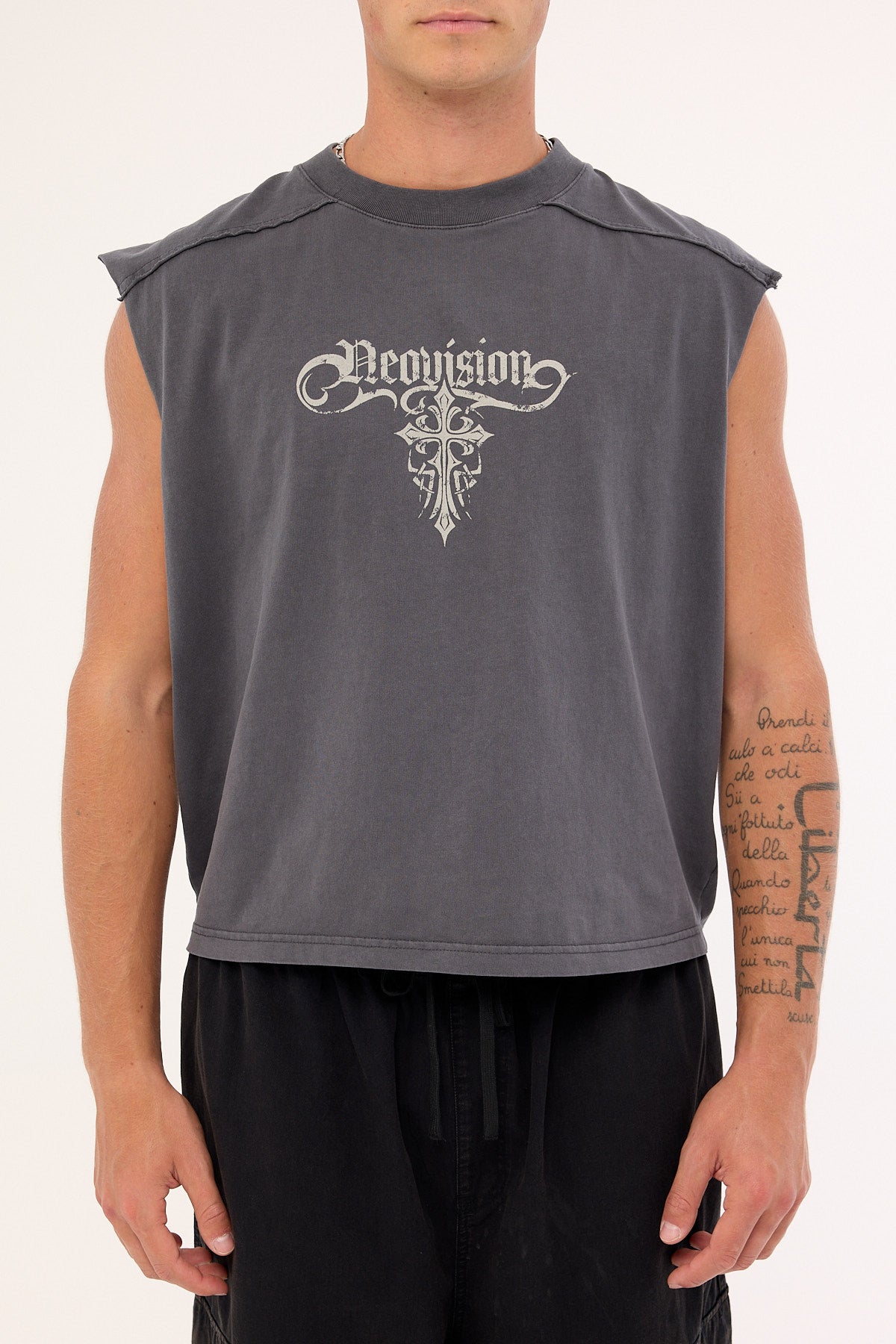 Tusk Distressed Cropped Muscle Tank Washed Black