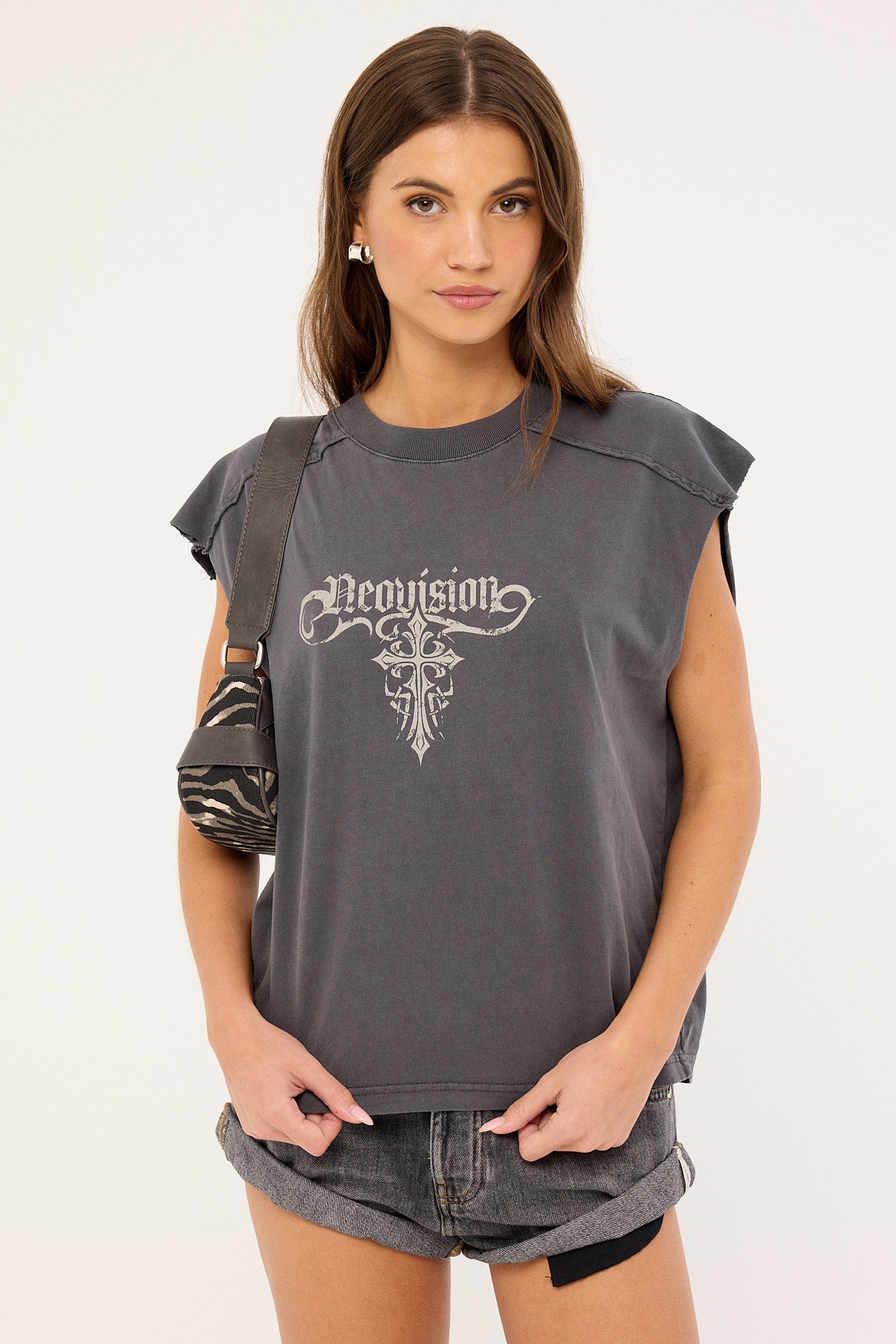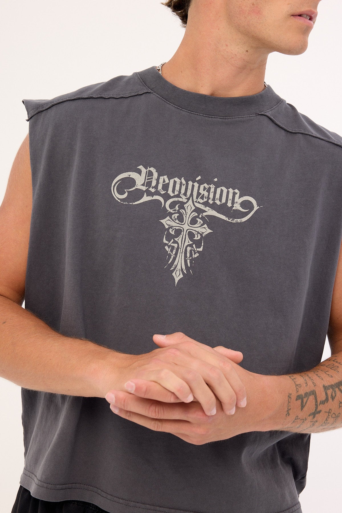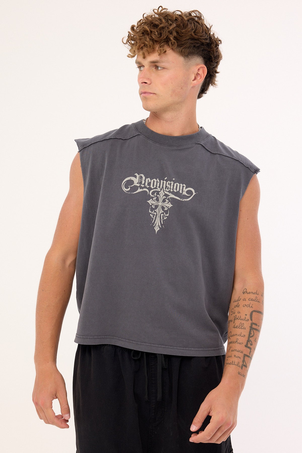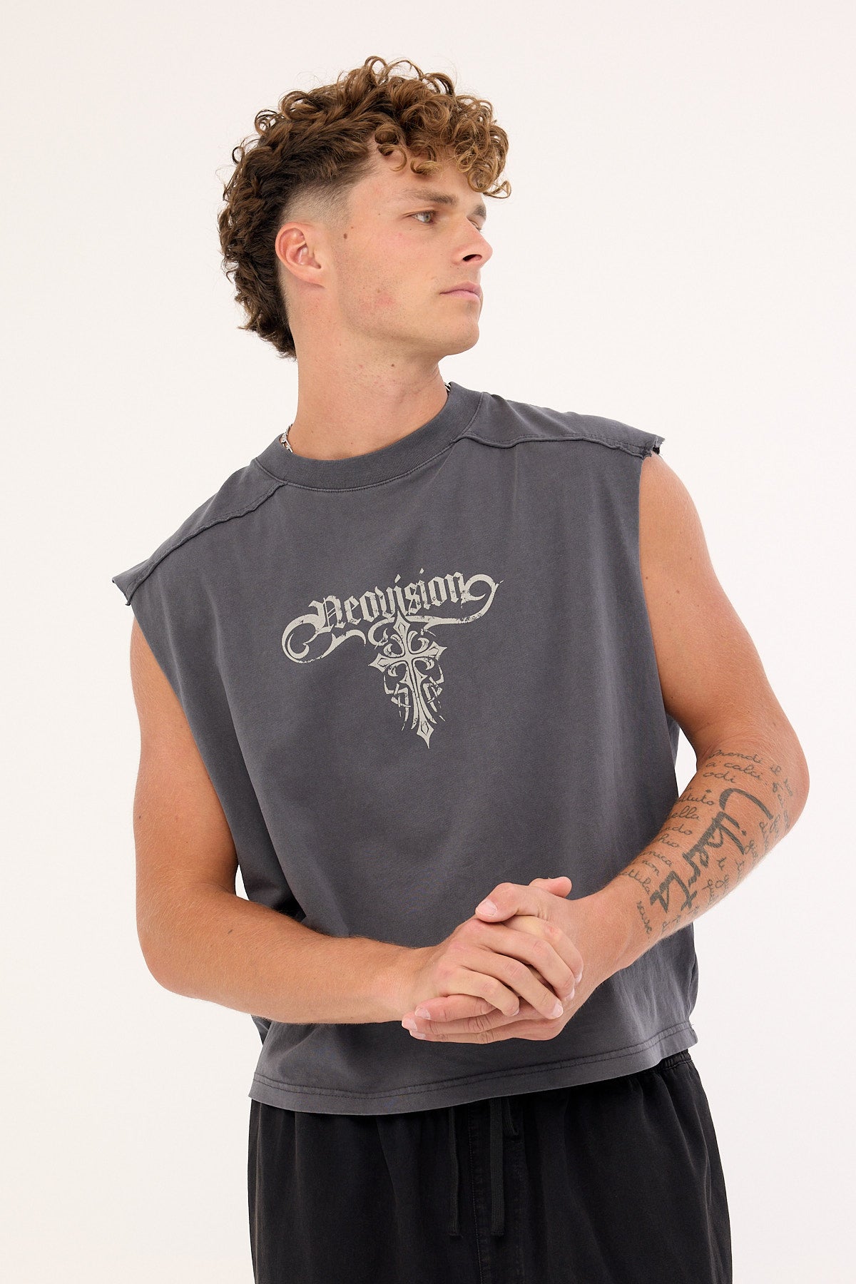 Tusk Distressed Cropped Muscle Tank Washed Black