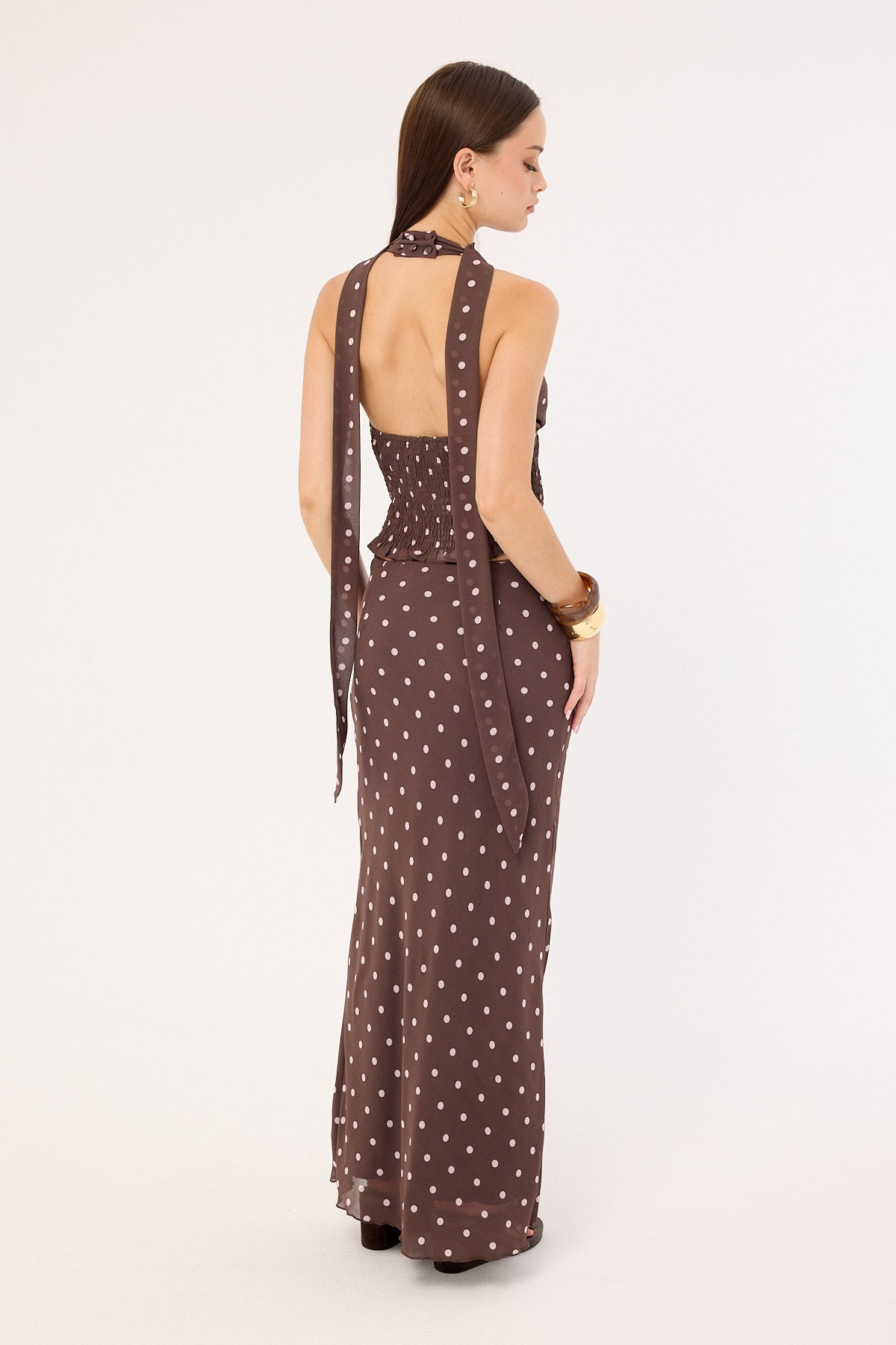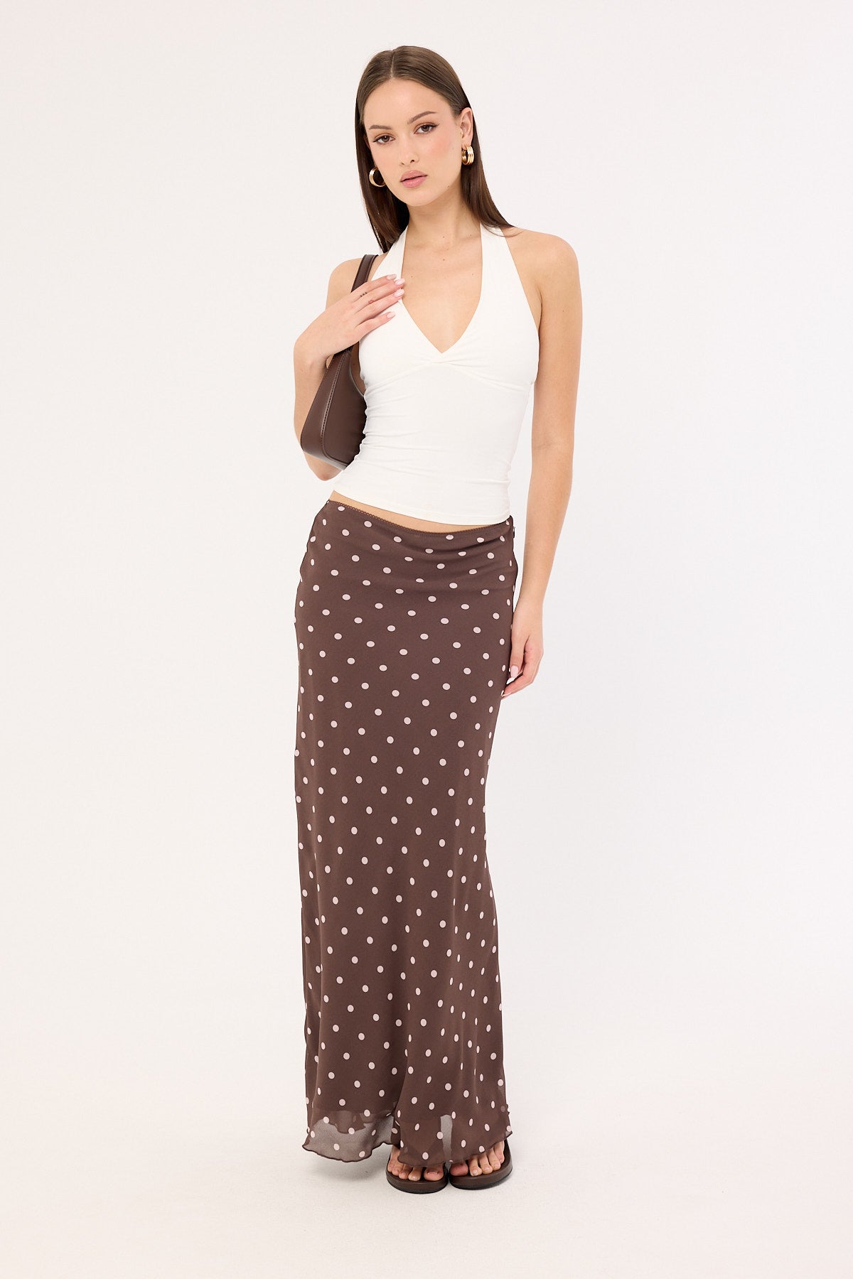 Polka Wish Maxi Skirt Brown