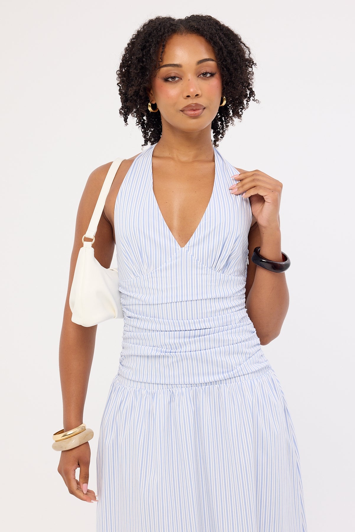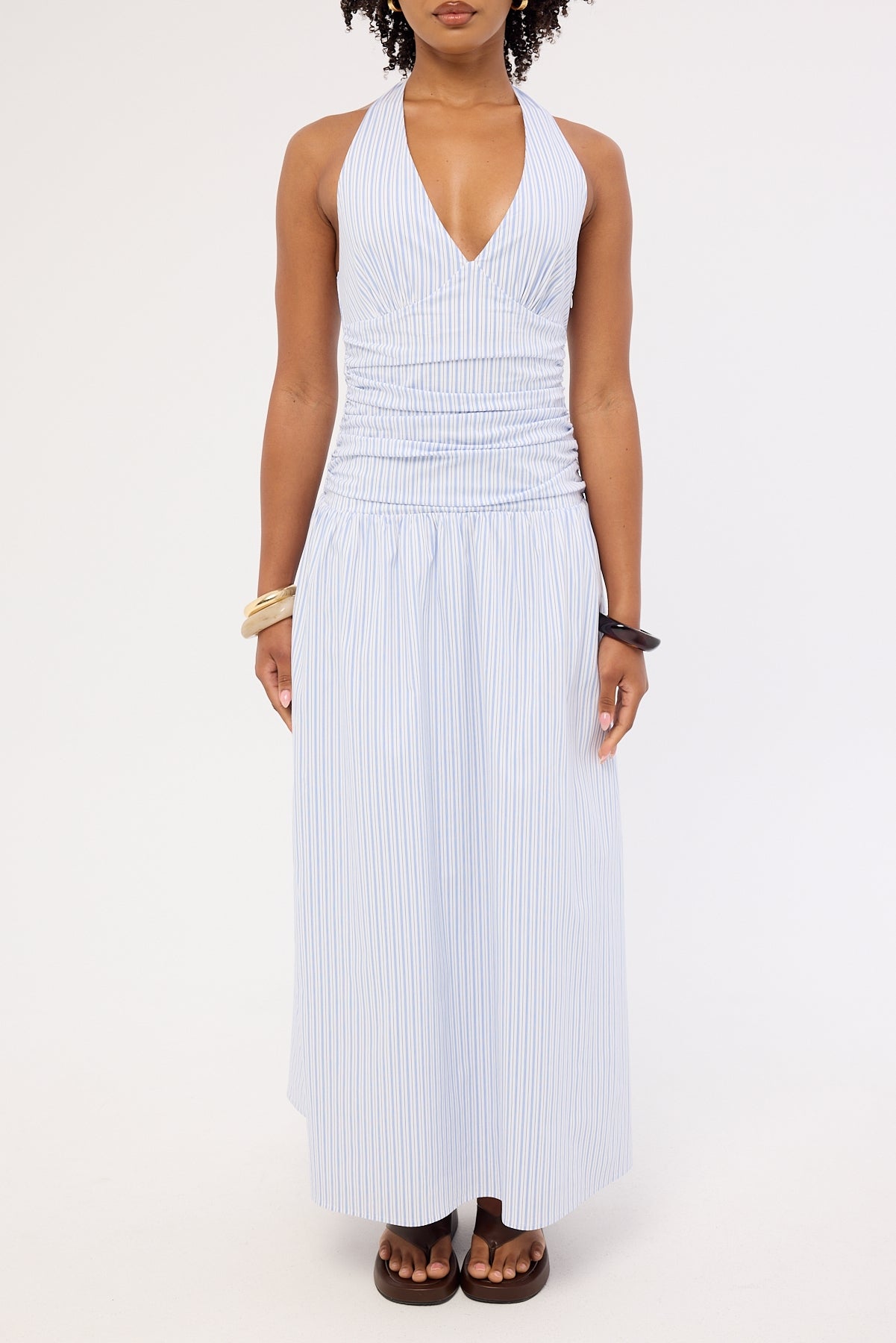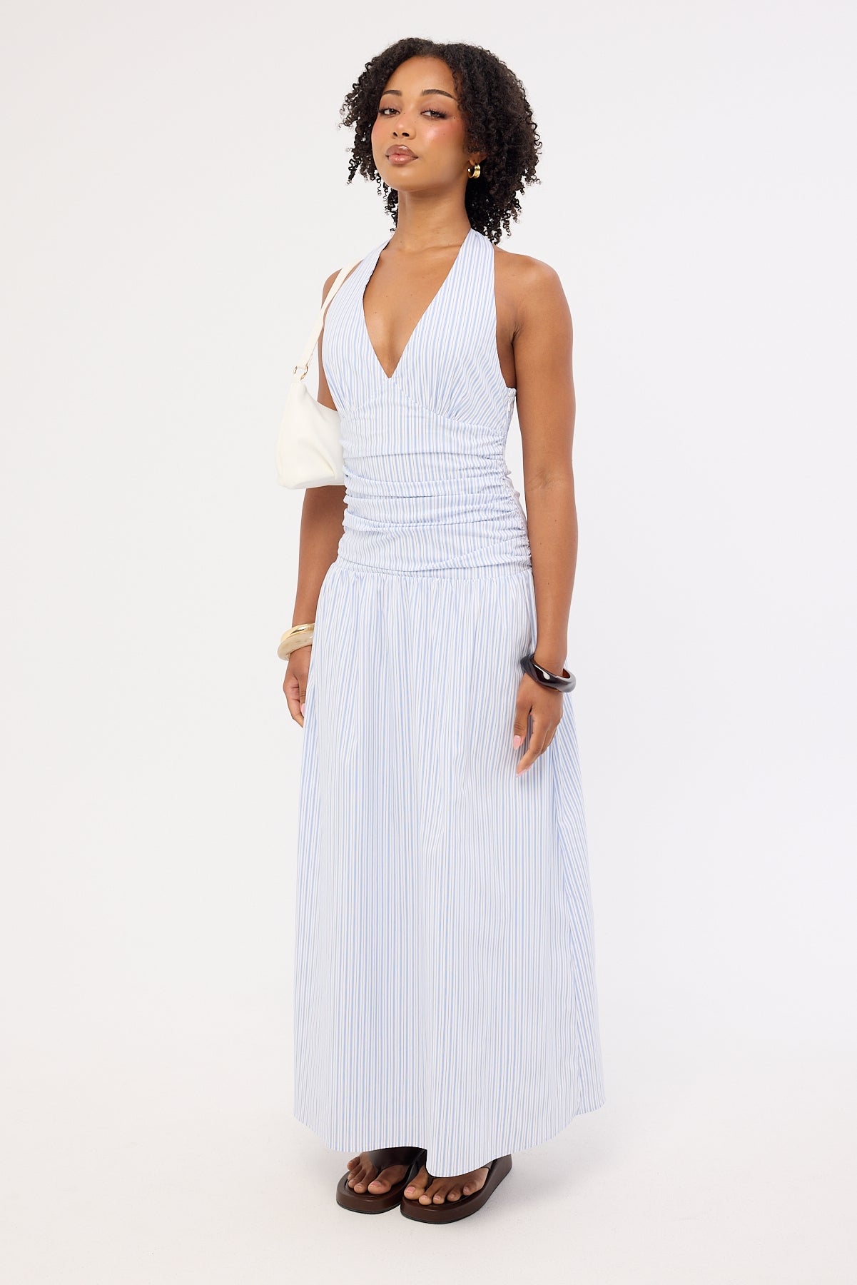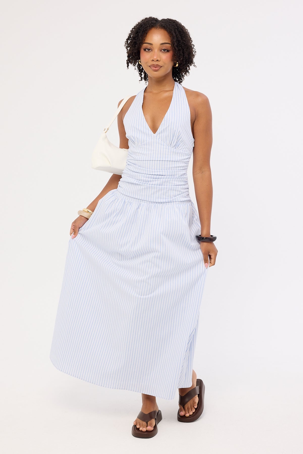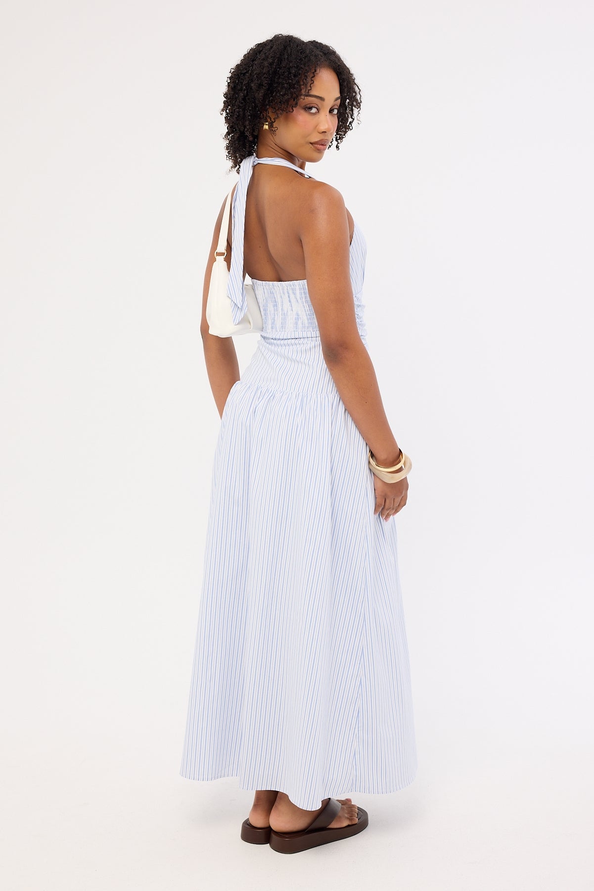 Skye Stripe Halter Maxi Dress Blue Stripe