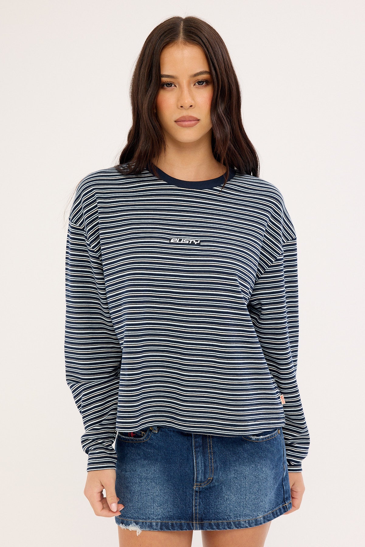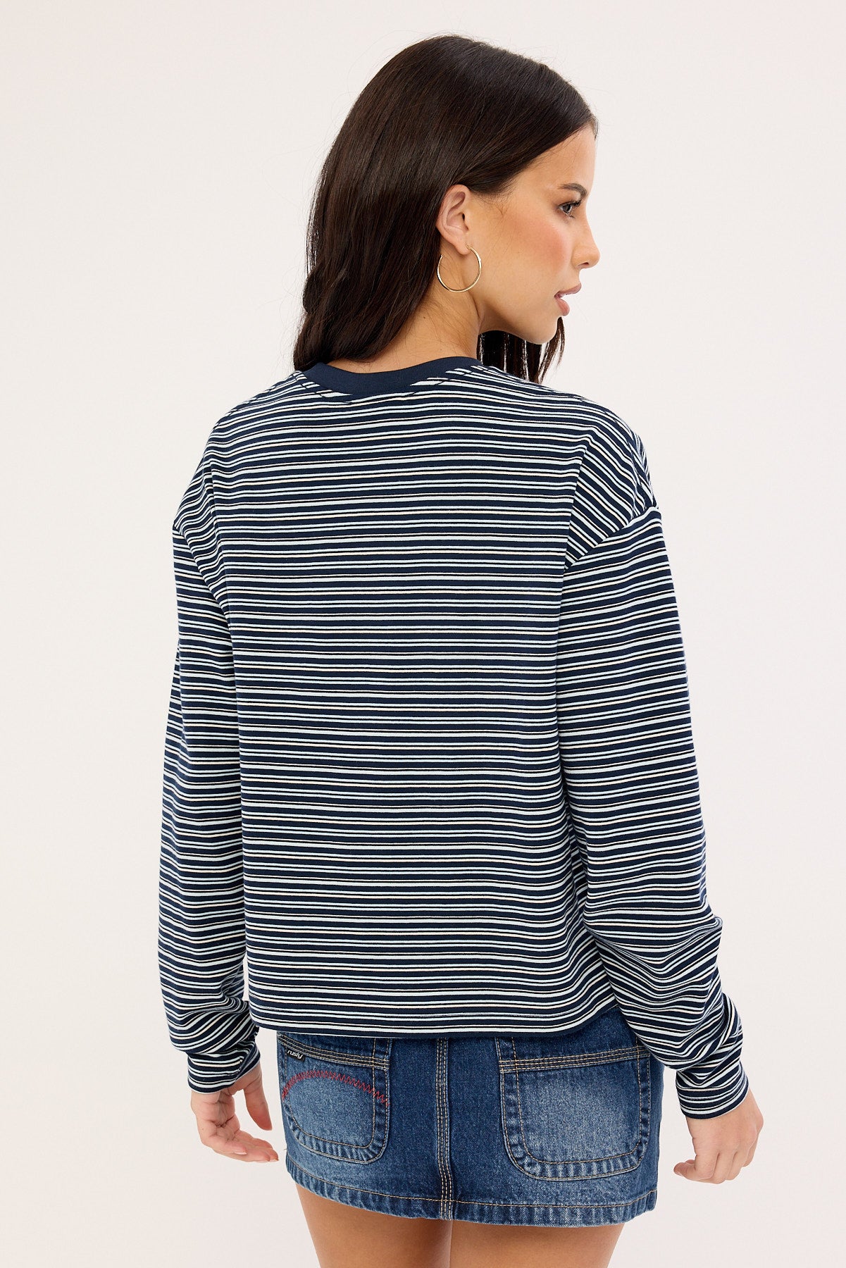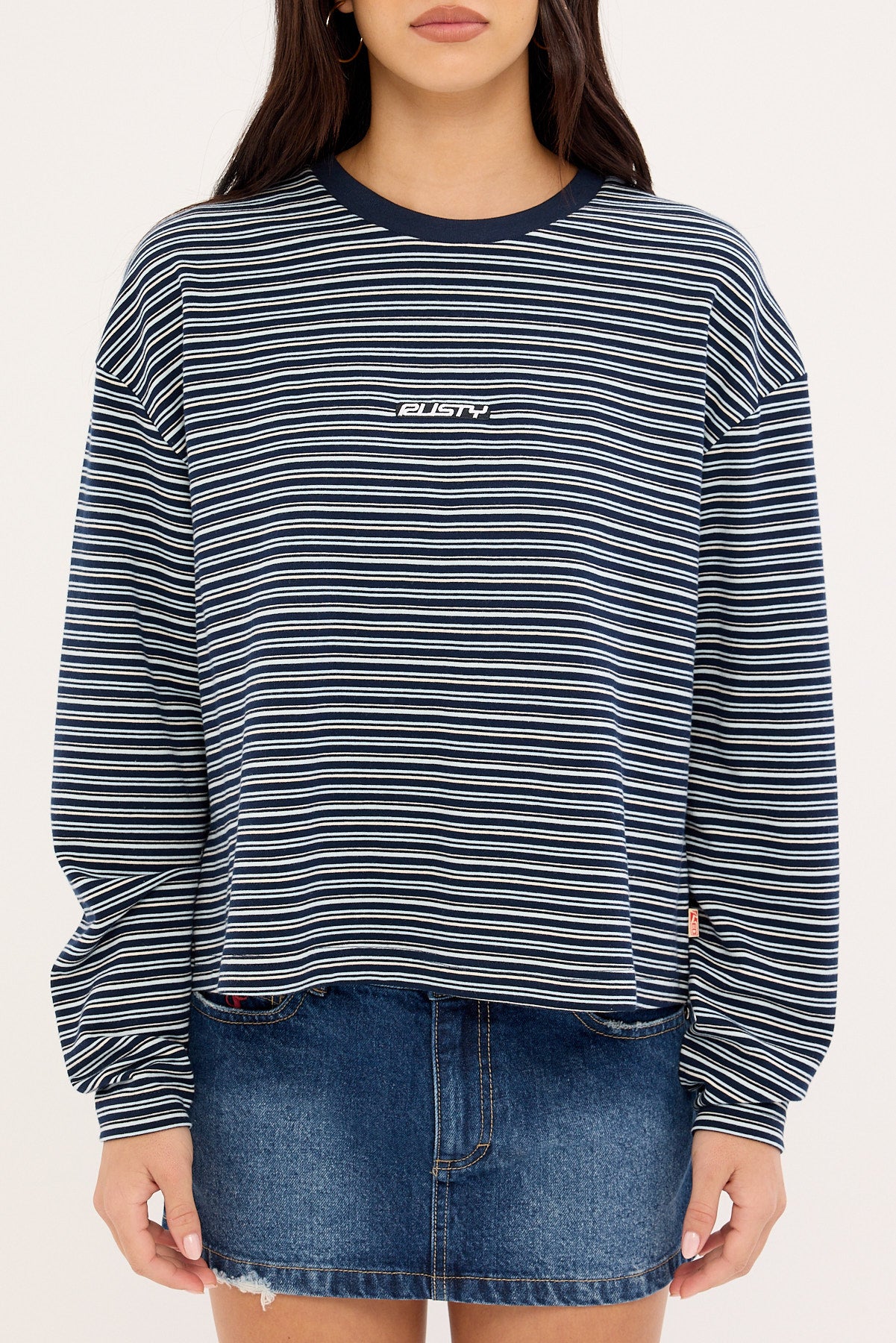 17 Degrees Stripe L/S Oversize Tee Blue Stripe