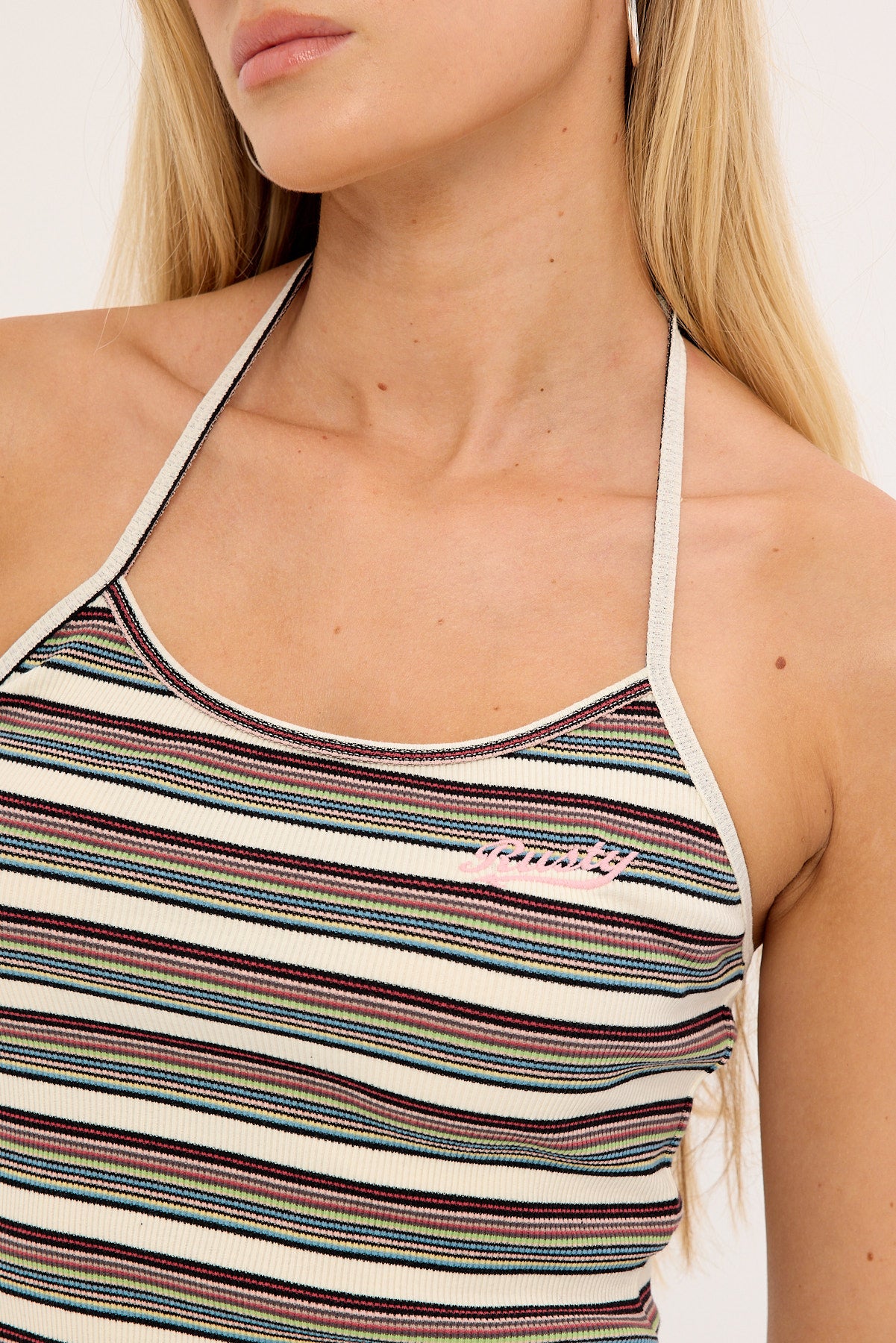 Blazed Stripe Halter Top Cream Multi Stripe