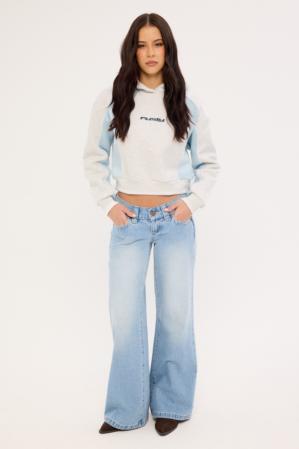 Mini Two Tides Cropped Hooded Fleece Ecru Marle