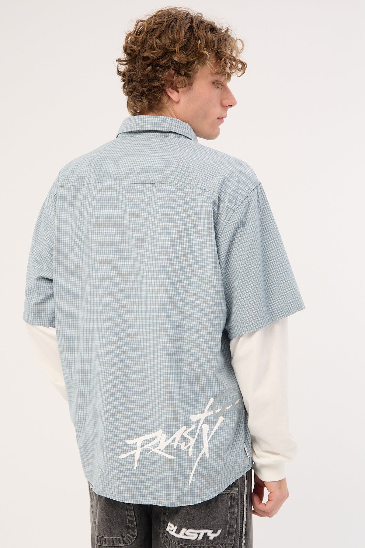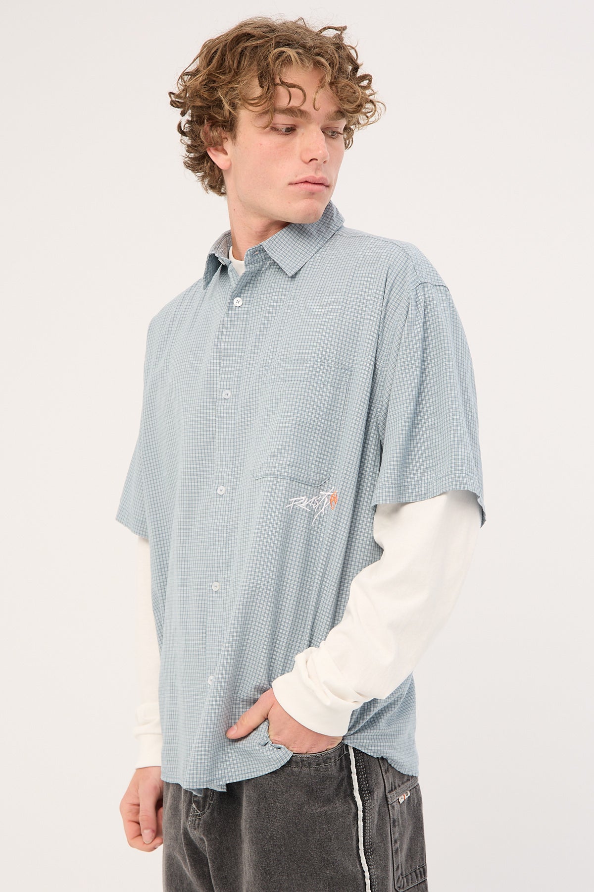 Pay N Spray Short Sleeve Check Shirt China Blue