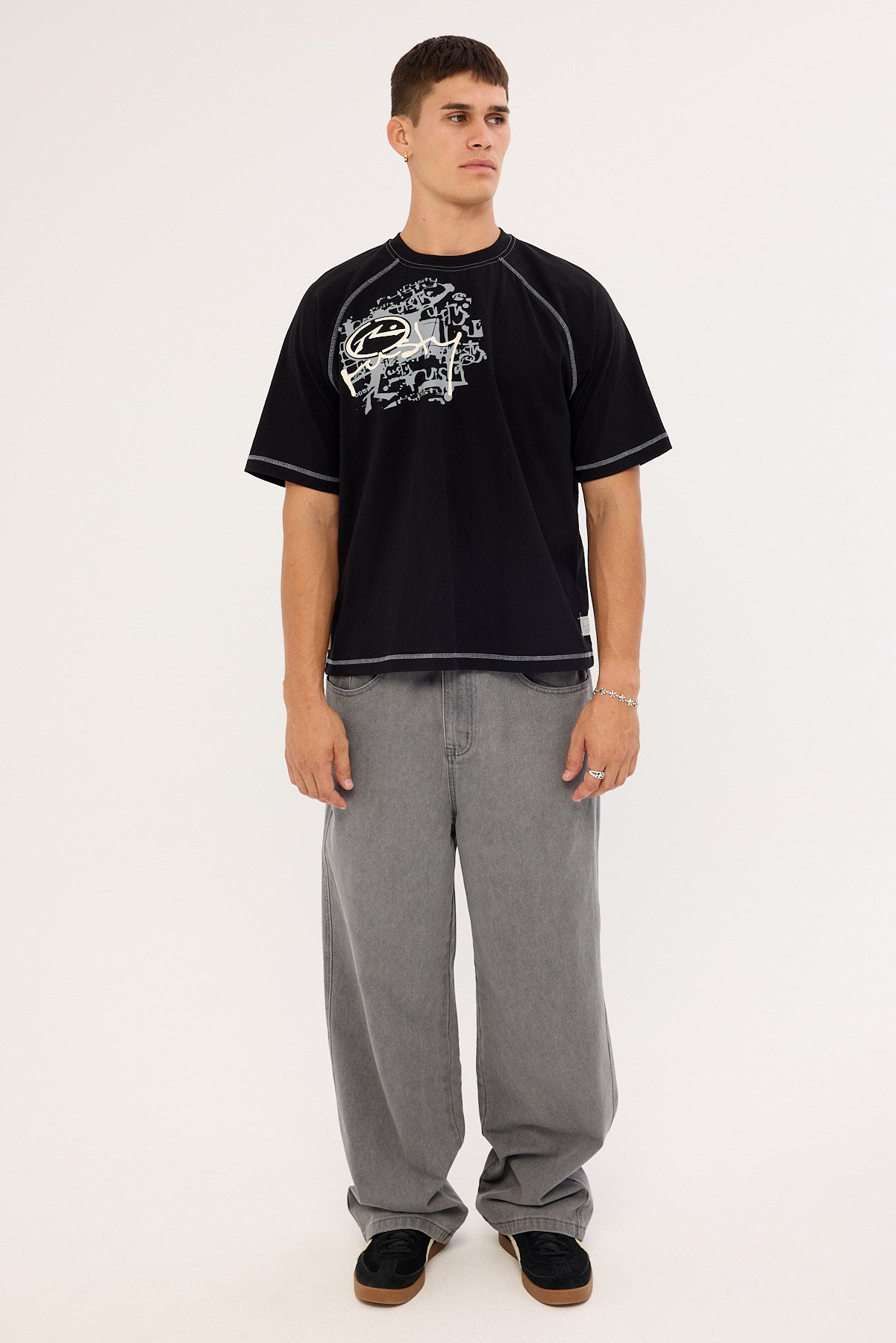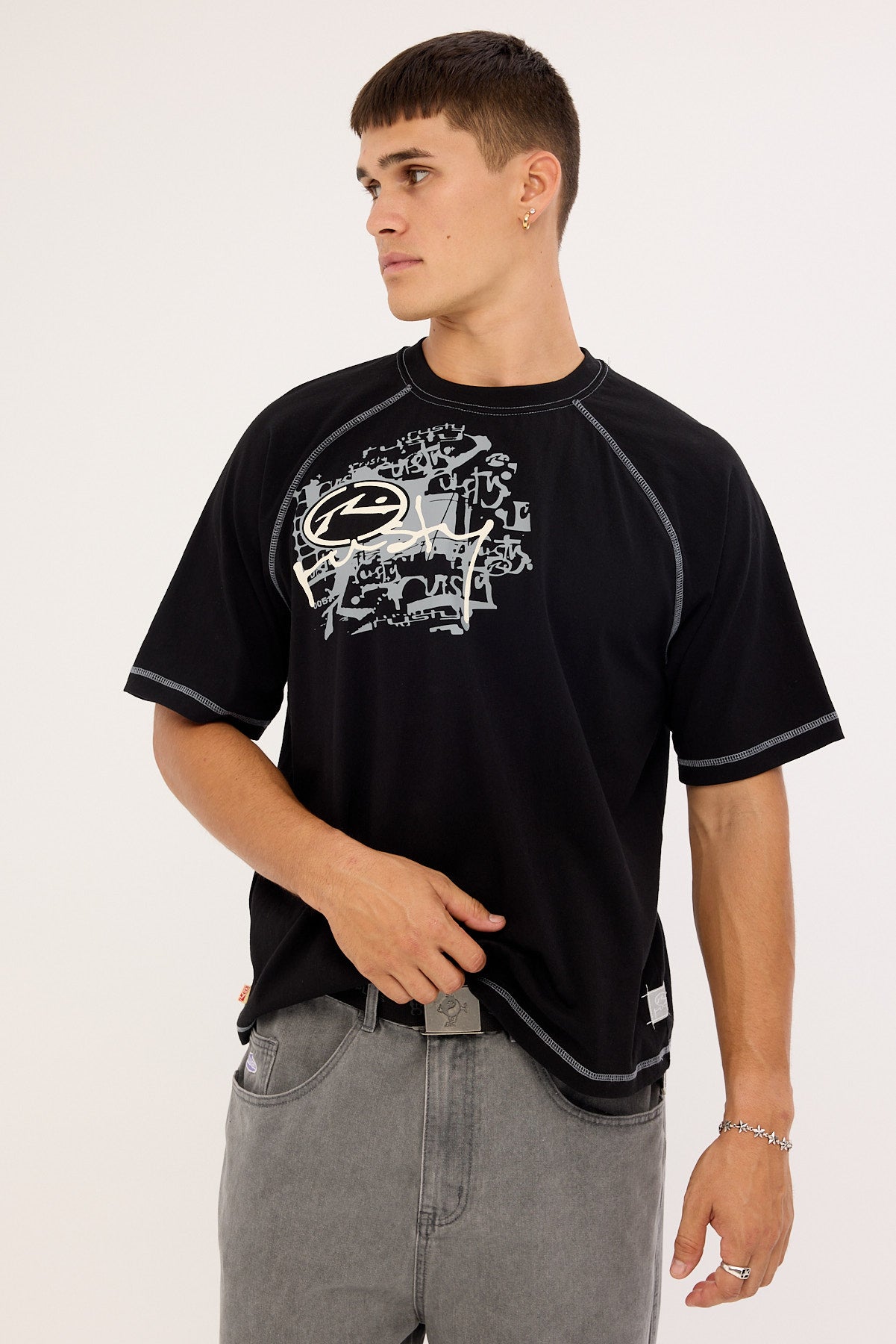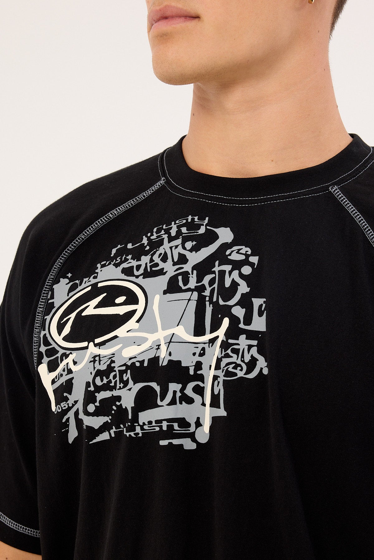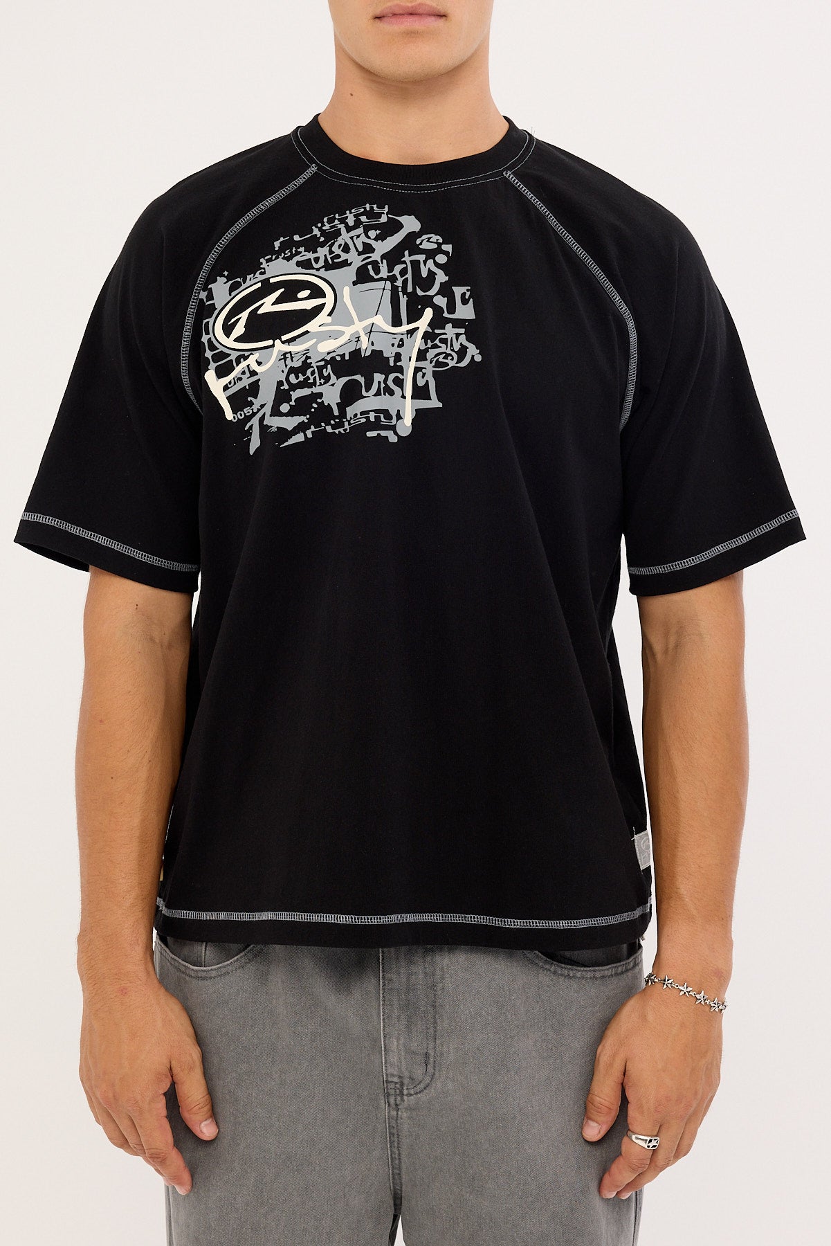 Riddle Me This Stripe Cropped Raglan Tee Black
