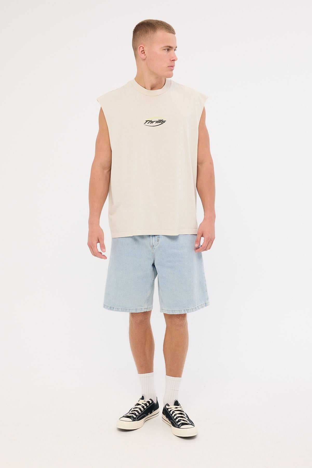 Fortune Favors Box Fit Oversize Cropped Muscle Tee Bisque
