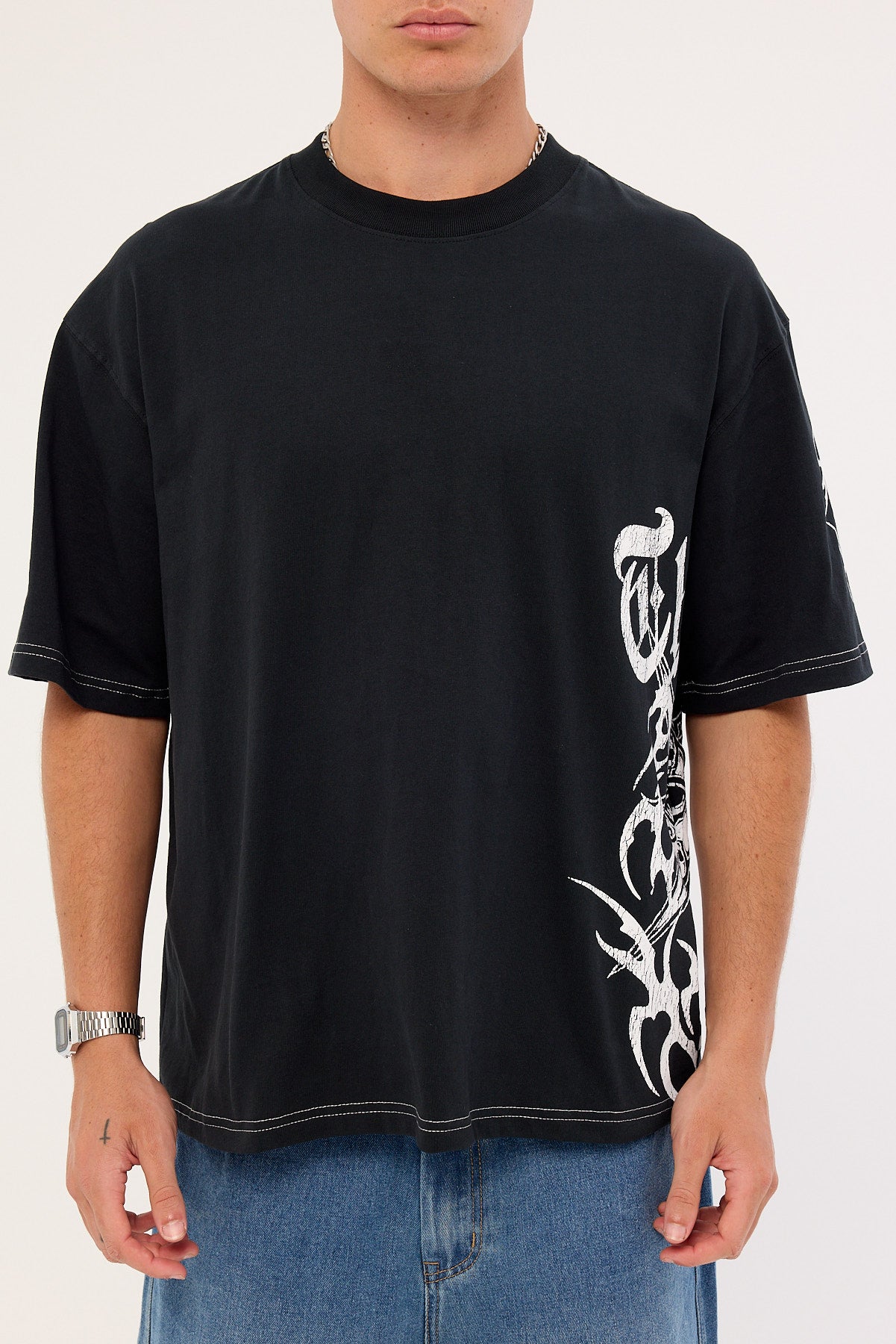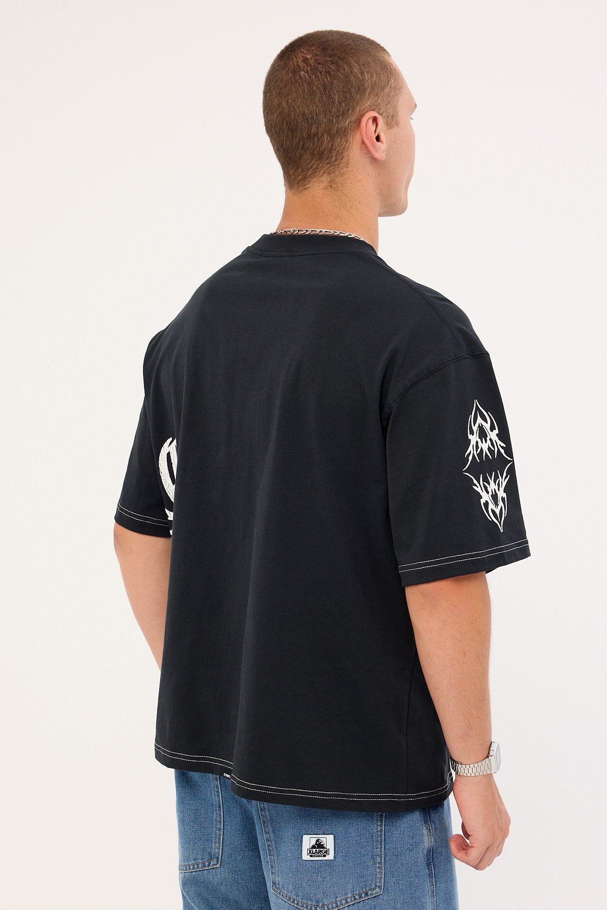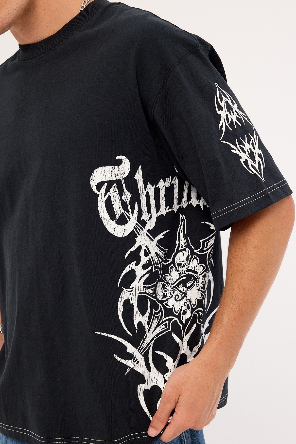 Misfortune Box Fit Oversize Cropped Tee Washed Black