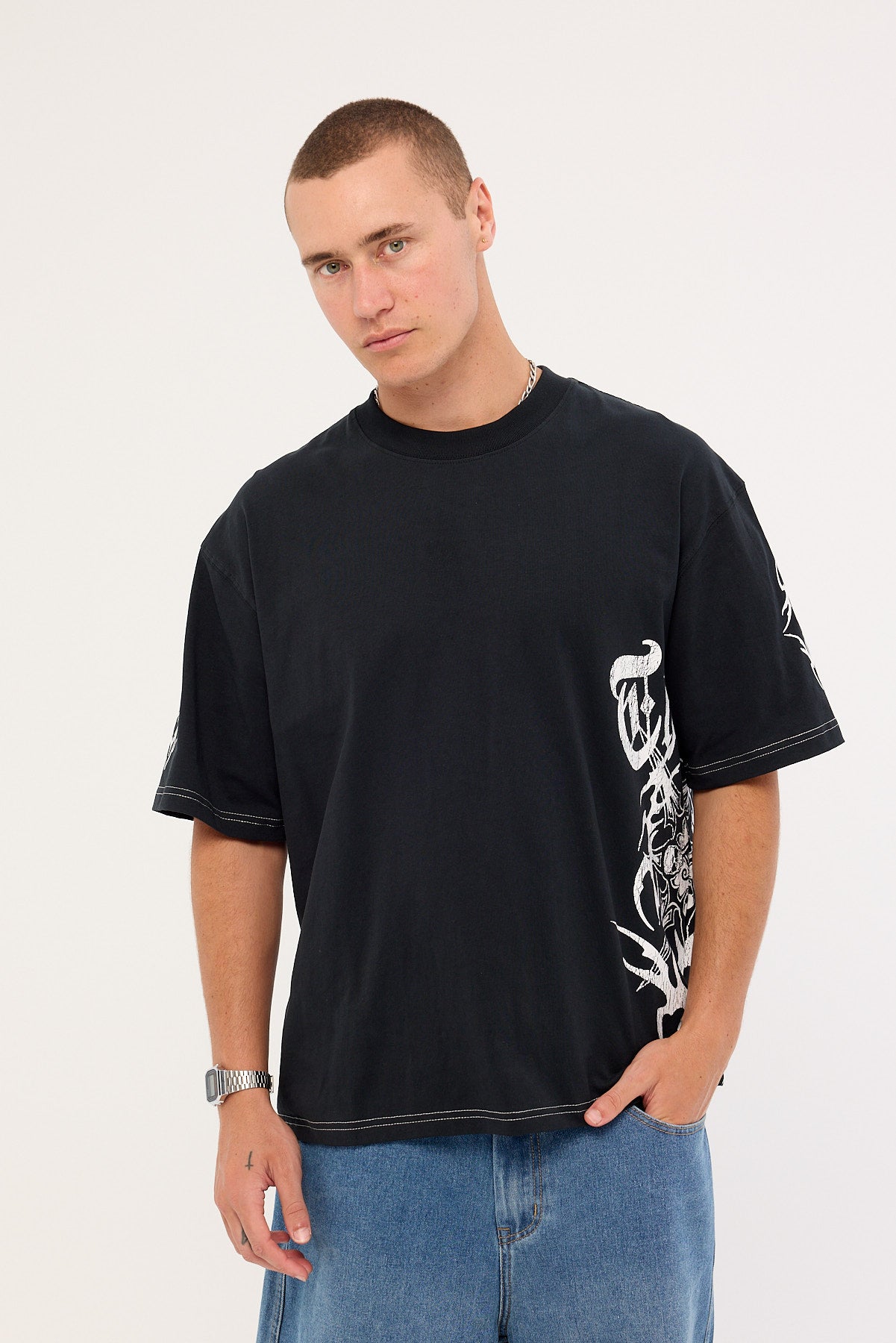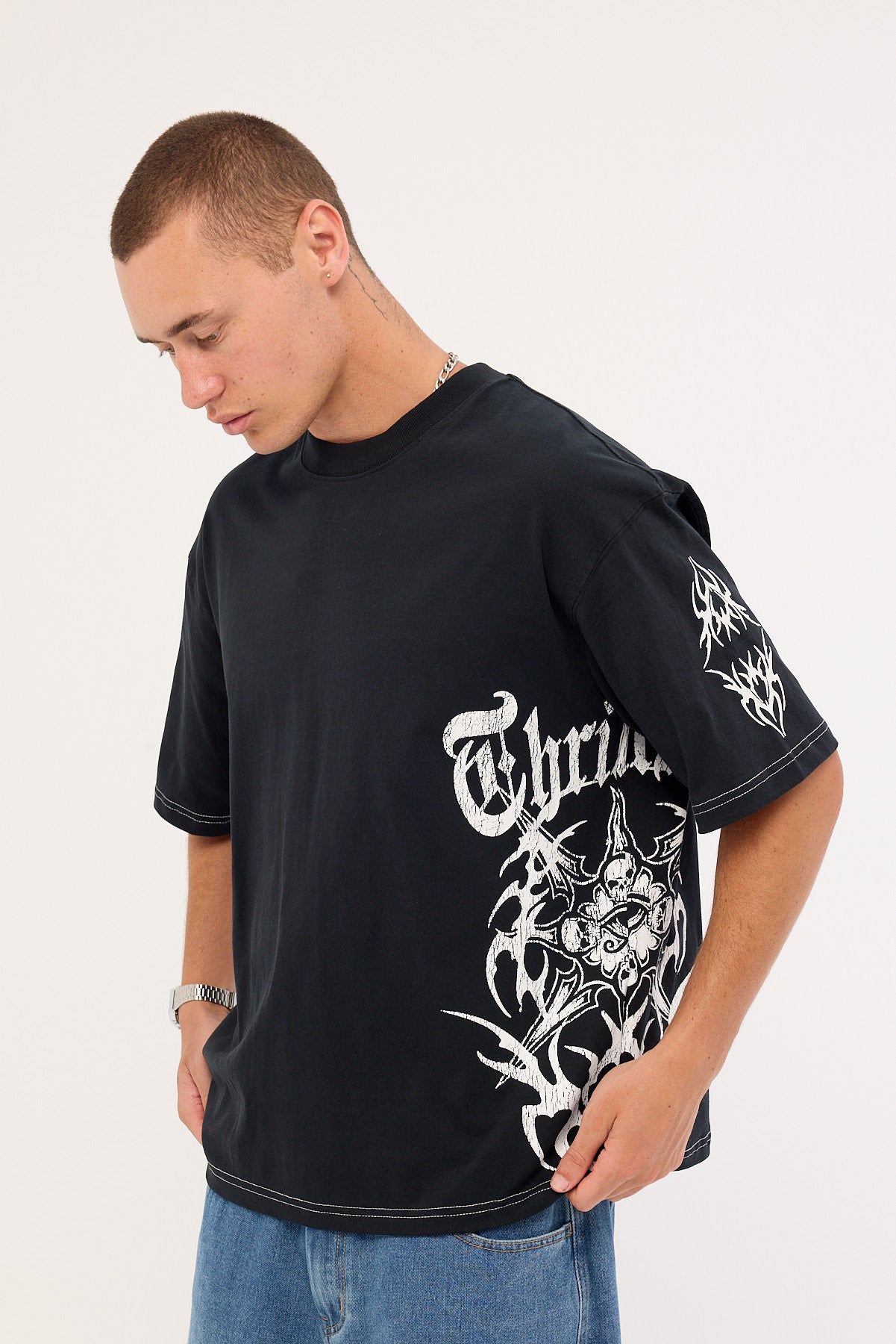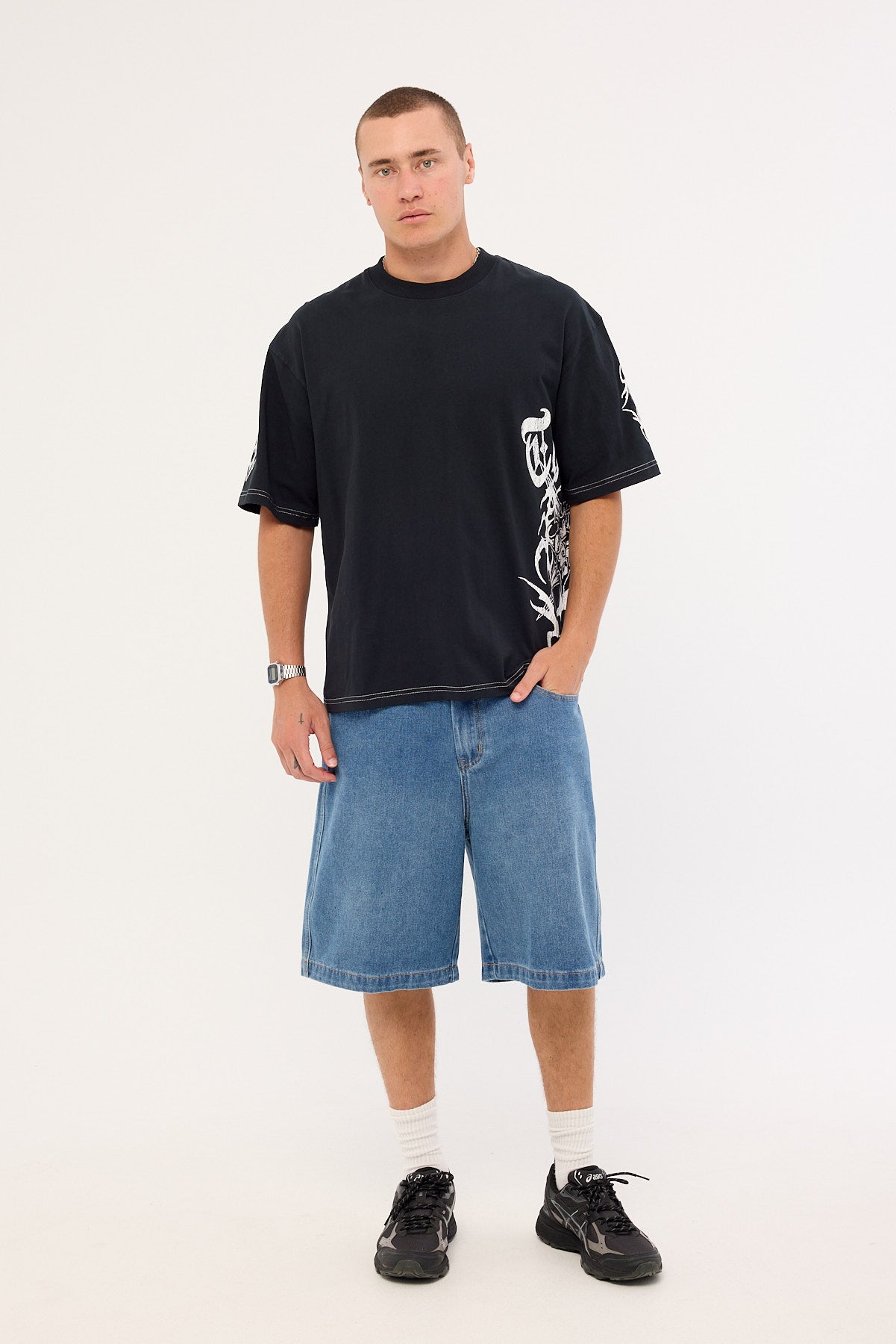 Misfortune Box Fit Oversize Cropped Tee Washed Black