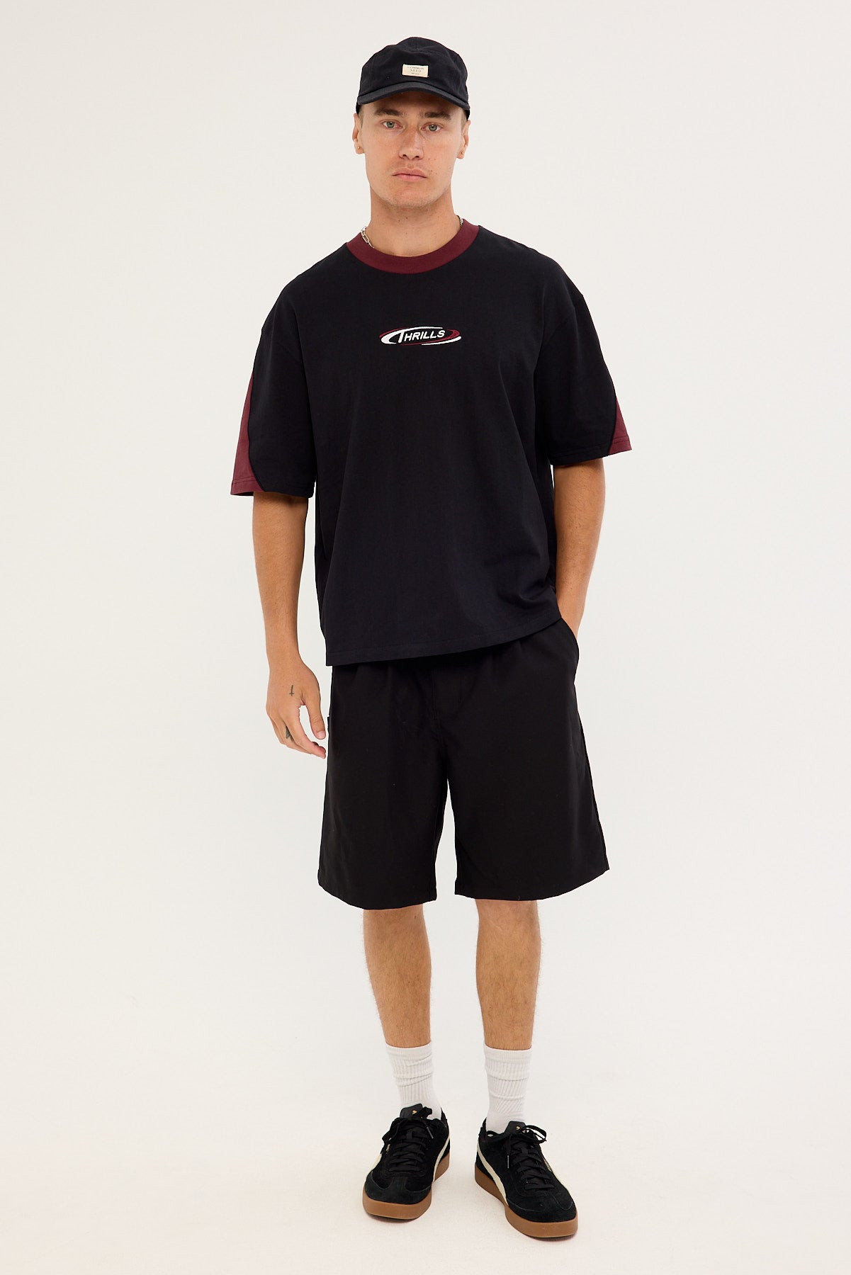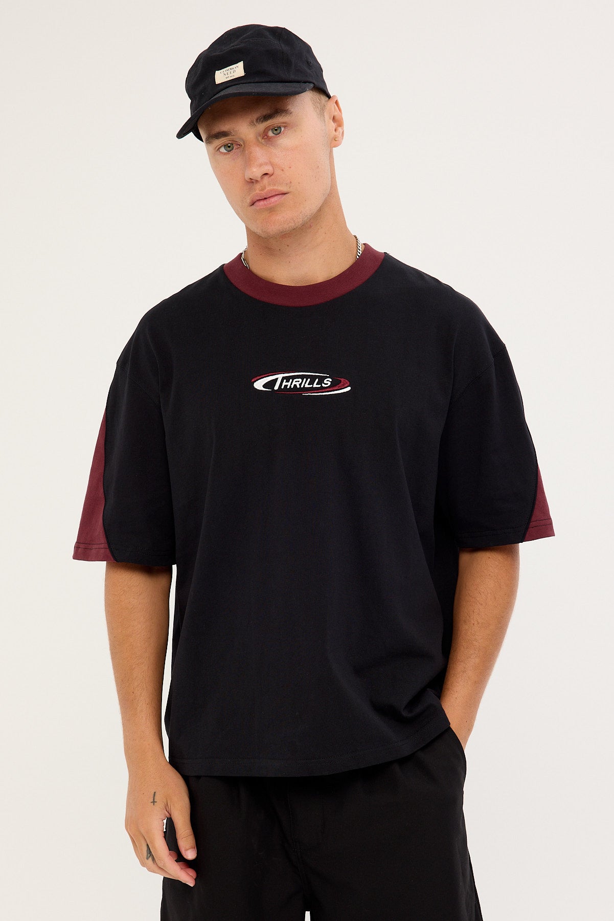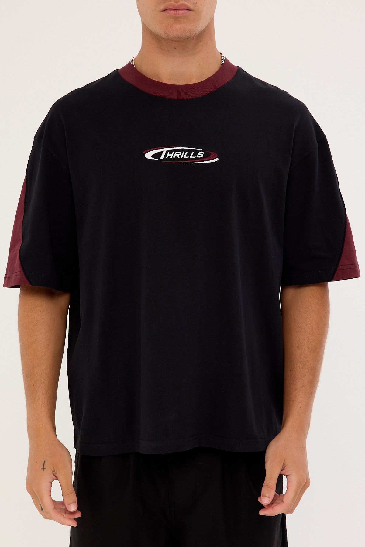 Spectral Panel Box Fit Oversize Cropped Tee Black
