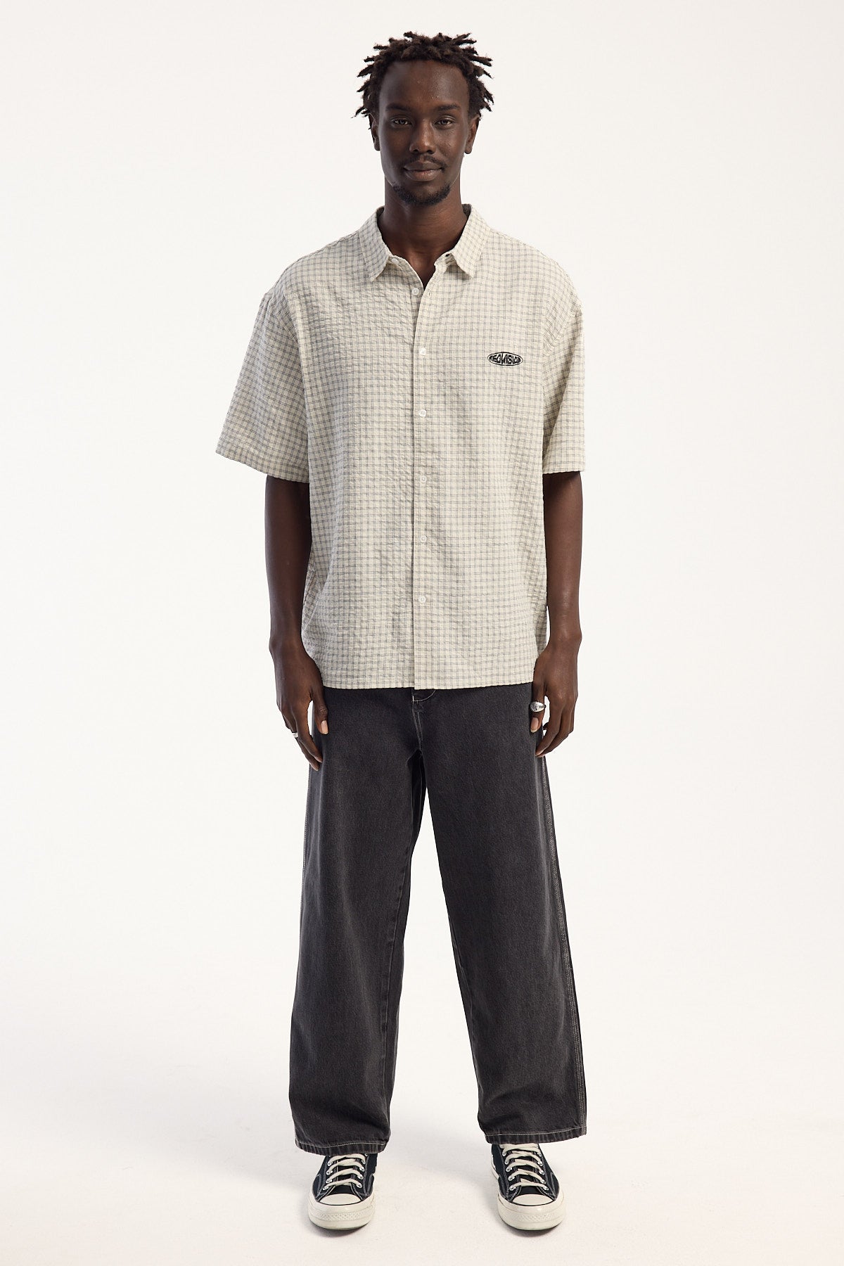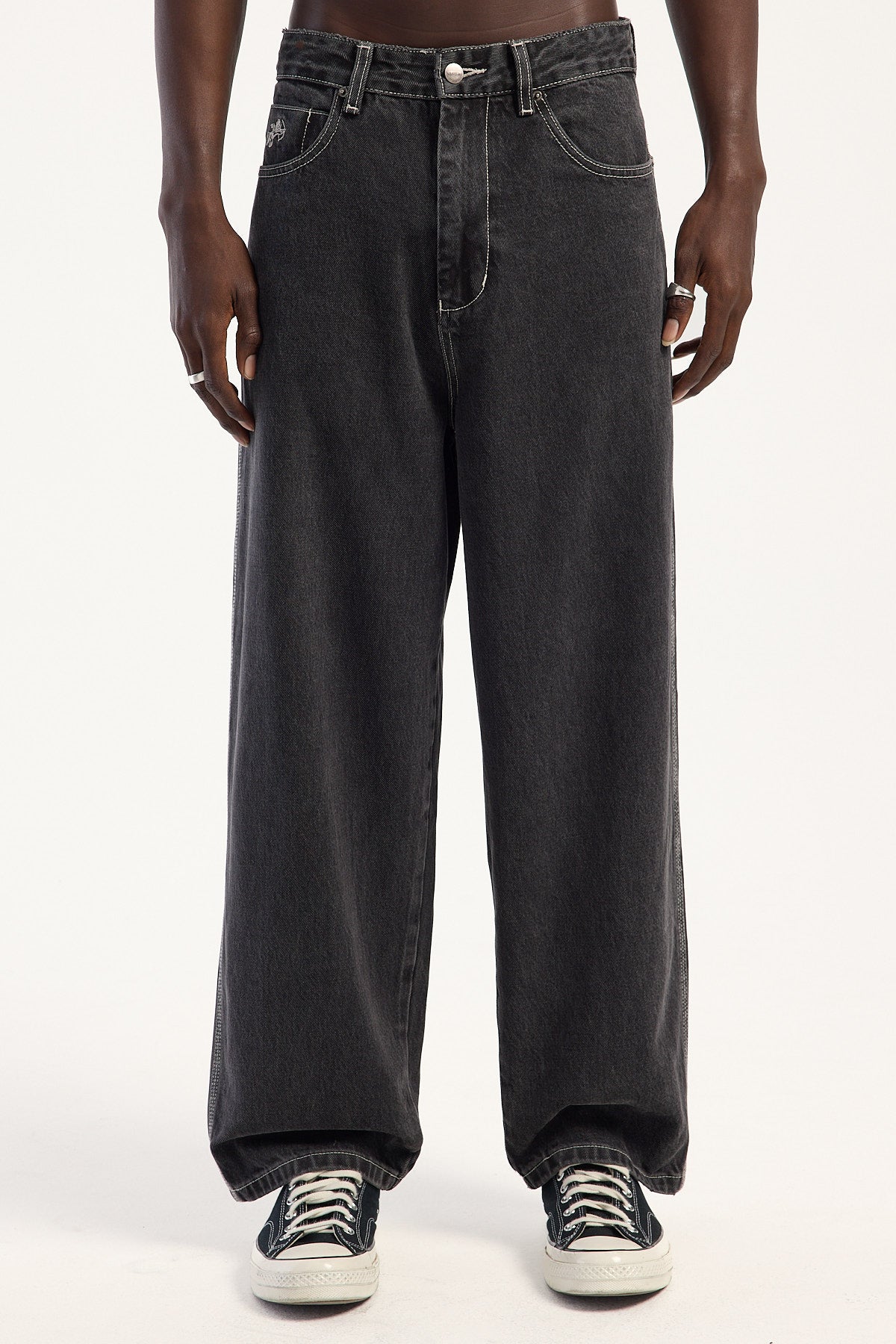 Go big with Worship's widest jean yet. Cut from 100% organic cotton, these jeans feature embroidery on the back left pocket and an internal drawstring waist adjustment for the perfect fit.